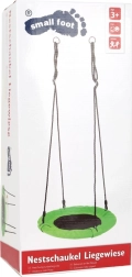 Зеленият хамак щъркелово гнездо SMALL FOOT превръща всяка градина, тераса или детска стая в оазис на спокойствие и забавление. Благодарение на мекия, удобен ръб и кръглата форма, осигурява безопасно и уютно място за четене, почивка и люлеене. Металните халки улесняват бързото окачване, а устойчивите материали гарантират дълъг живот.