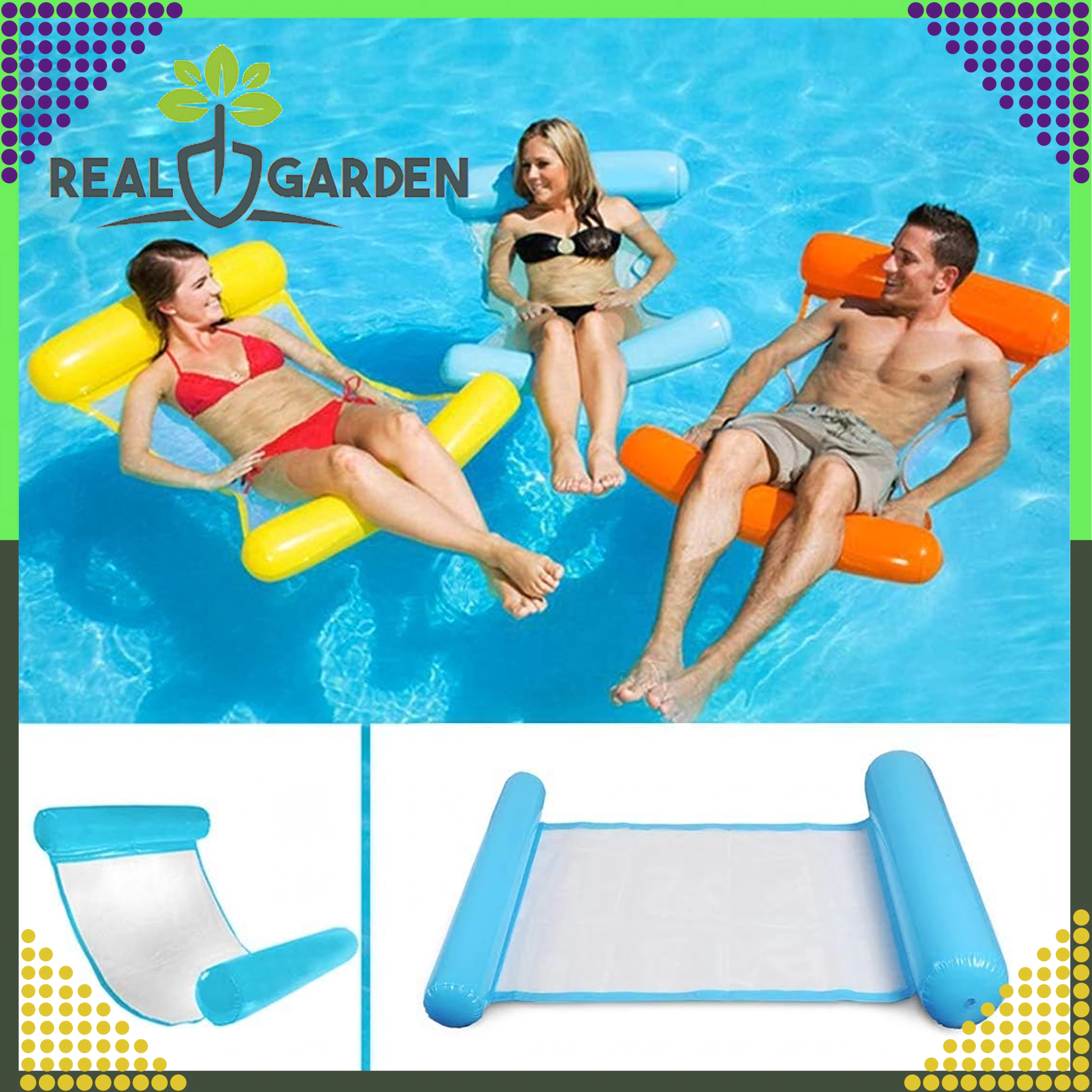 Насладете се на лятото с удобния надуваем воден хамак, който комбинира шезлонг и стол за вода. Благодарение на мрежата ще бъдете приятно охладени, докато плувате, и едновременно с това ще почивате стабилно. Лек, компактен и бърз за употреба – идеален за басейн, езеро и море. Страхотна алтернатива на традиционните надуваеми дюшеци за максимален релакс във водата.