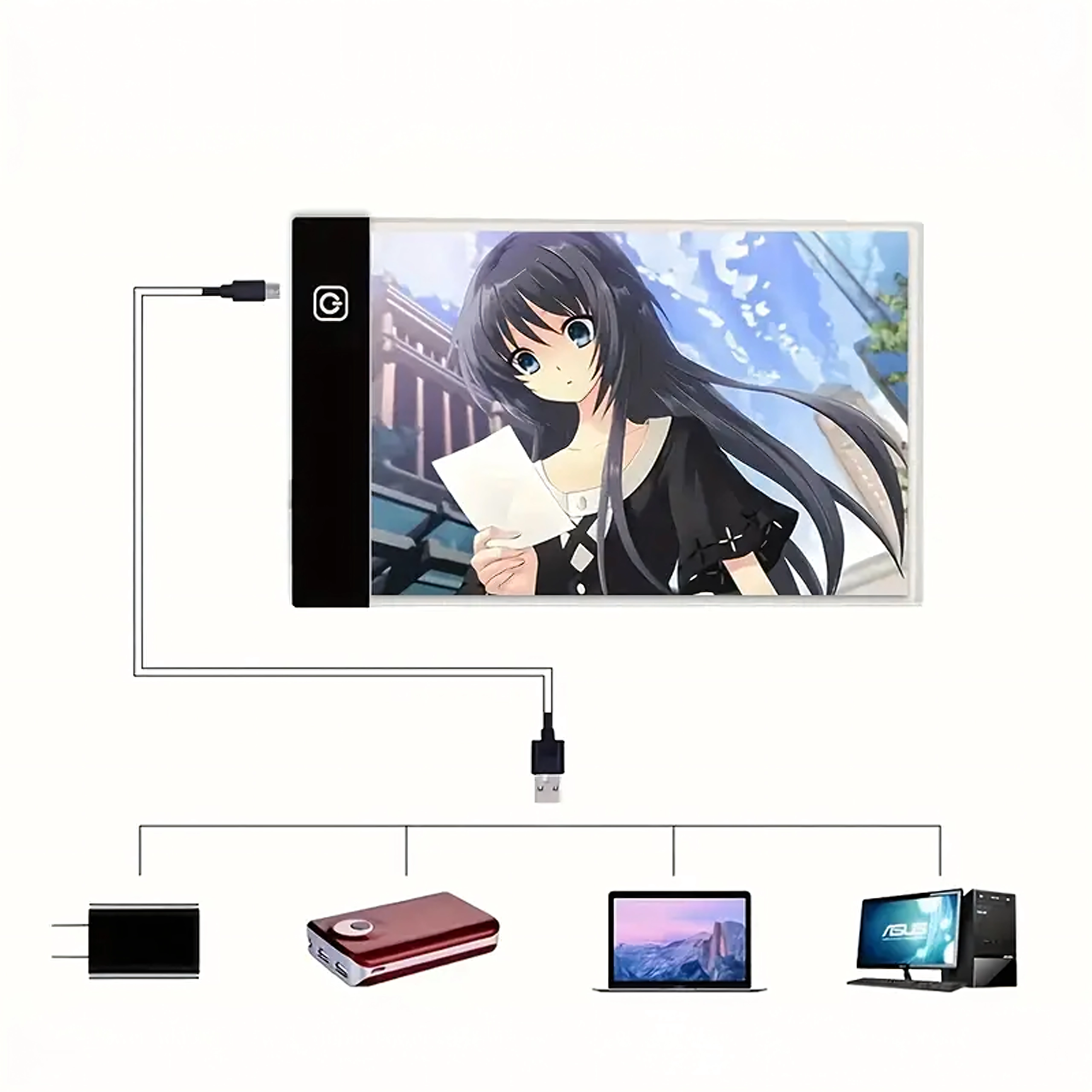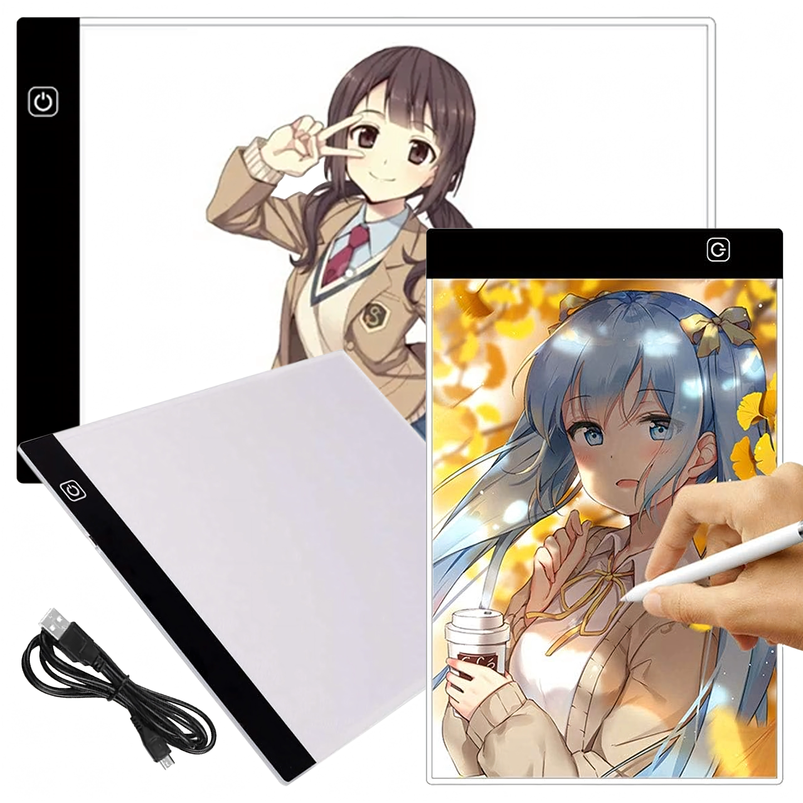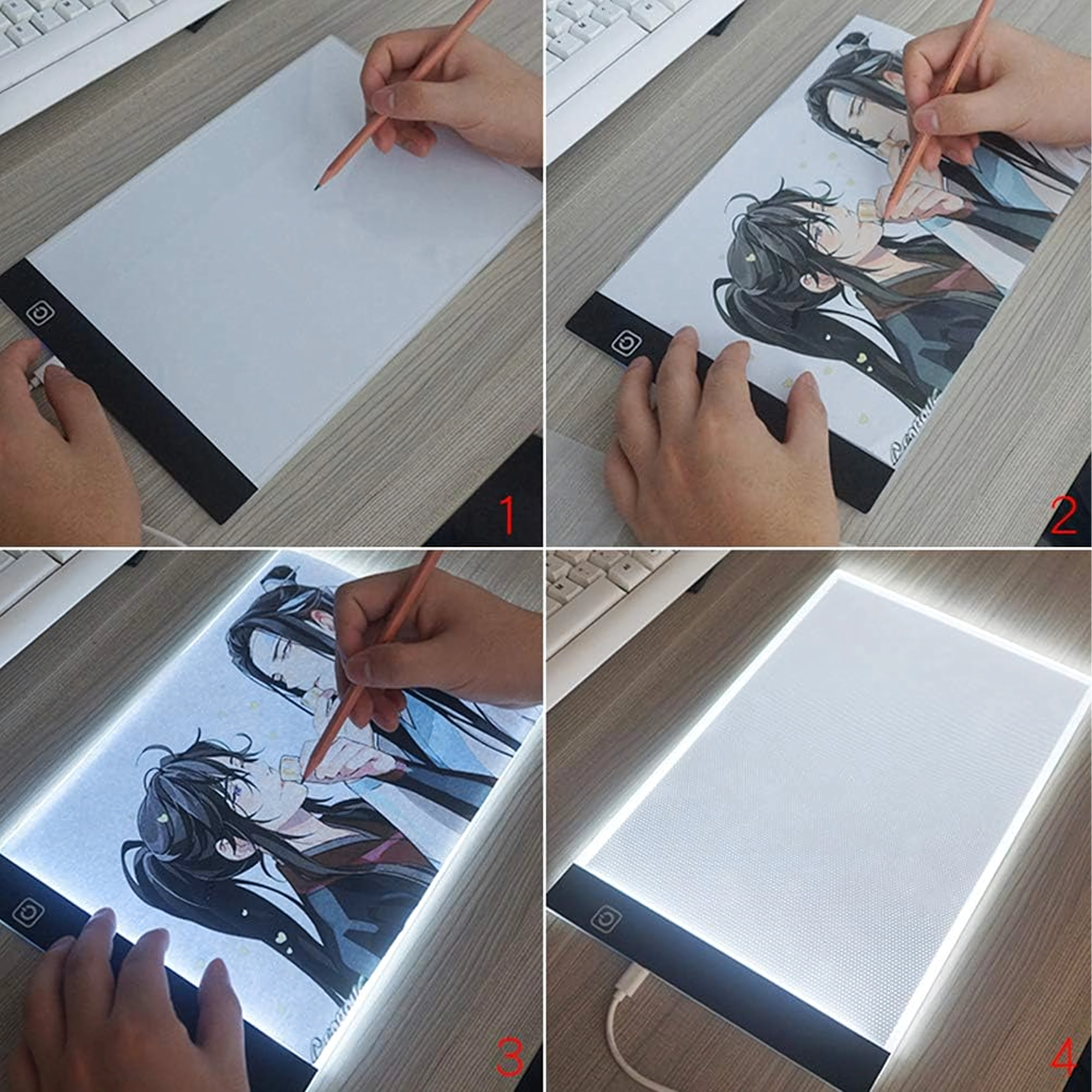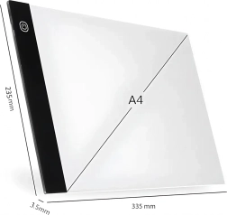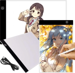Тази тънка и преносима LED light pad A4 улеснява ежедневната креативна работа. Благодарение на равномерното подсветване линиите ясно прозираат през хартията, така че прерисуването на комикси, илюстрации или технически скици е бързо и прецизно. Управлението е лесно чрез сензорен бутон, а захранването се осъществява през USB от лаптоп, външна батерия или адаптер.