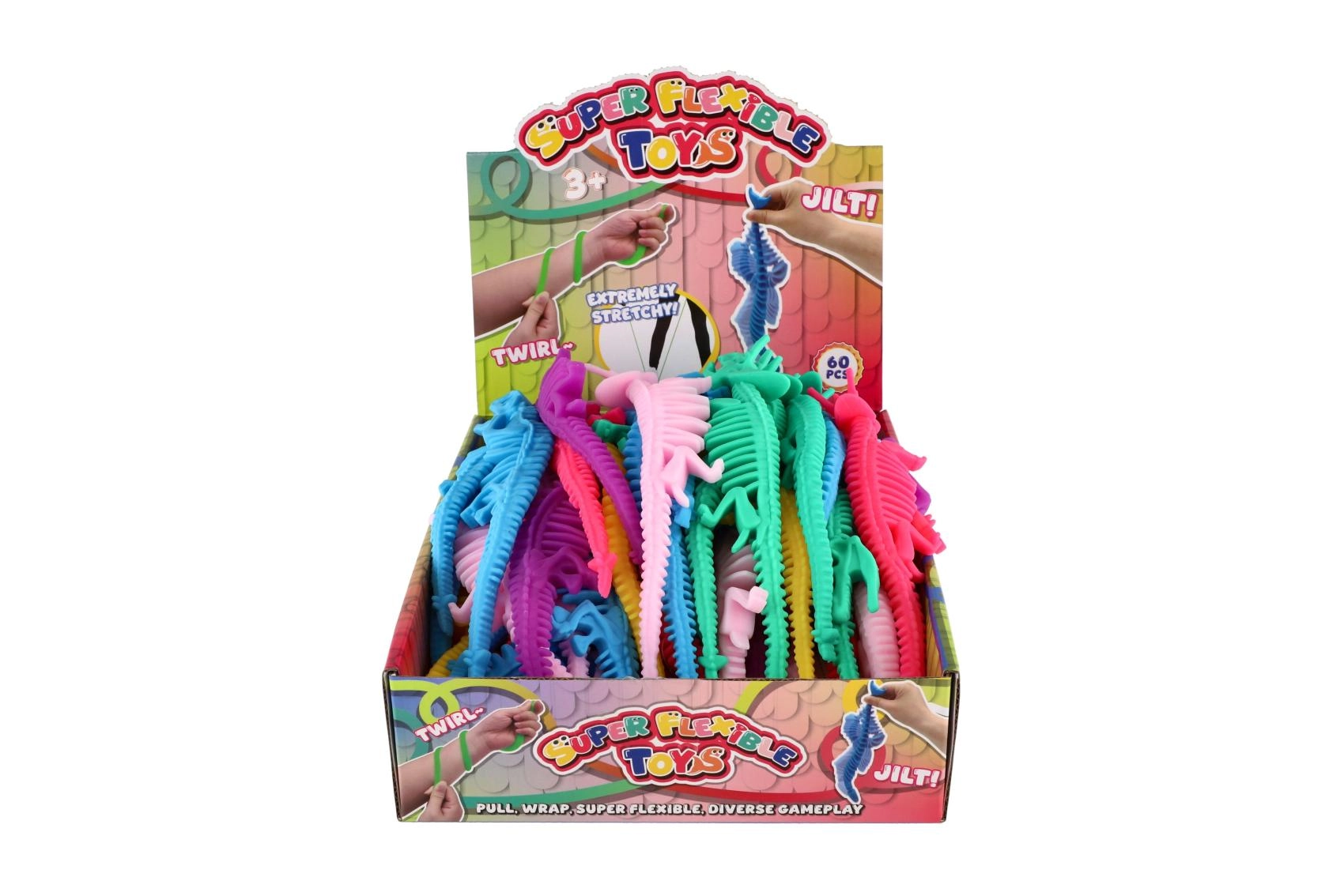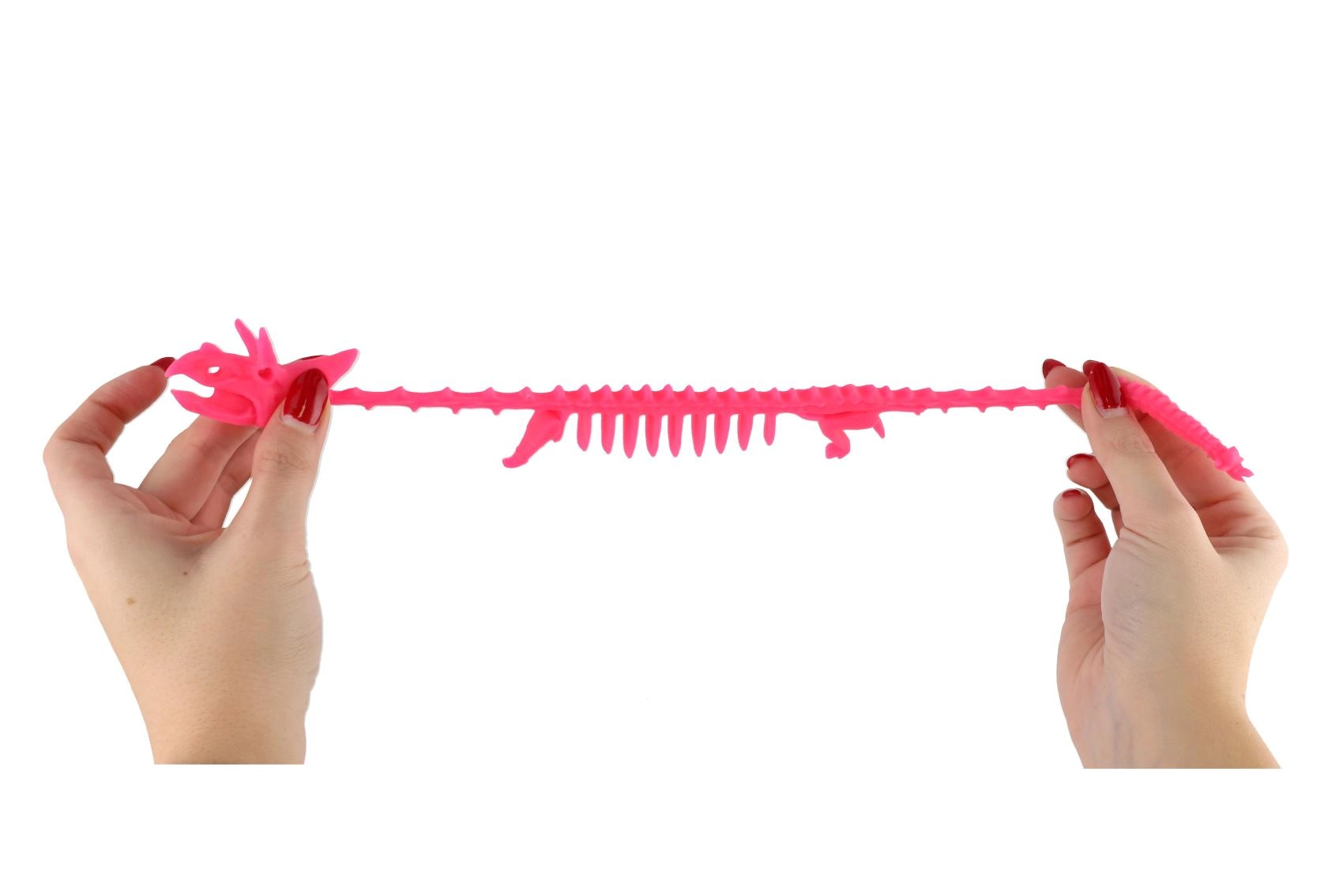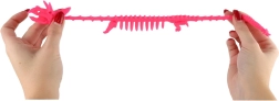 Тази разтеглива скелетна фигура на динозавър е перфектно антистрес средство за ежедневни моменти на спокойствие. Мекият и еластичен силикон позволява играчката да се стиска, разтяга и усуква без риск от повреда, като помага за освобождаване на напрежението и подобрява концентрацията.