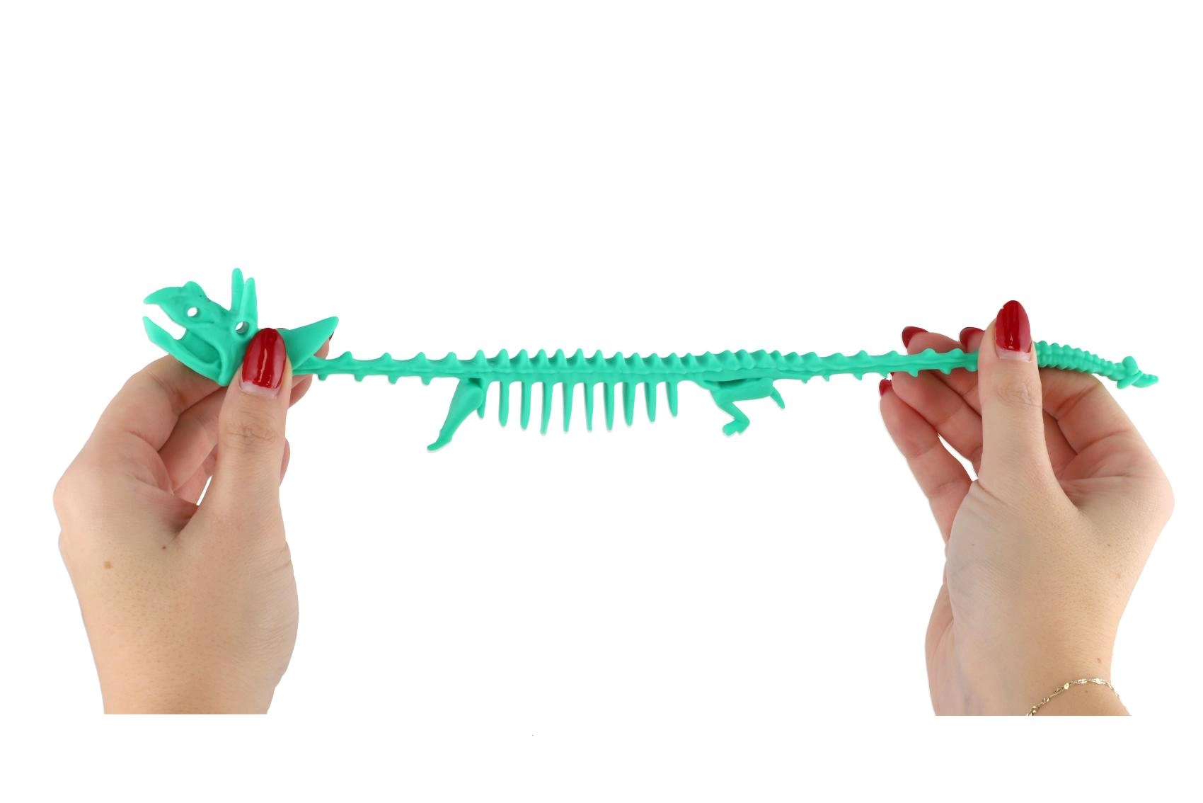 Благодарение на дължината 22 см пасва отлично в ръката както на деца, така и на възрастни. Подходяща като фиджет аксесоар за училище, офис и пътуване. Наситените цветове и детайлният „скелетен“ дизайн подпомагат тактилната стимулация и игривото въображение.