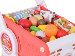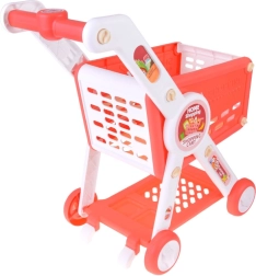Детската пазарска количка в червено–бял цвят е идеална за игра на магазин, кухничка и домашни сценки. Здравата, но лека конструкция с четири колела позволява плавно движение у дома, а долният рафт осигурява допълнително място за „по-големи покупки“. Включен е пъстър комплект пластмасови хранителни продукти, които изглеждат реалистично и приканват към изследване.