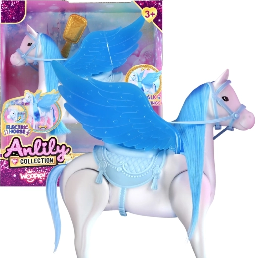 Влезте в света на магията и фантазията с прекрасния интерактивен Пегас, който ще се превърне в звездата на всяка детска история. Благодарение на електрическото движение кончето се реалистично придвижва само и децата могат да преживяват любимите си приказки отново и отново. Свалящото се седло и юлара, големите декоративни крила и блестящият вид гарантират още повече забавление.