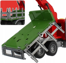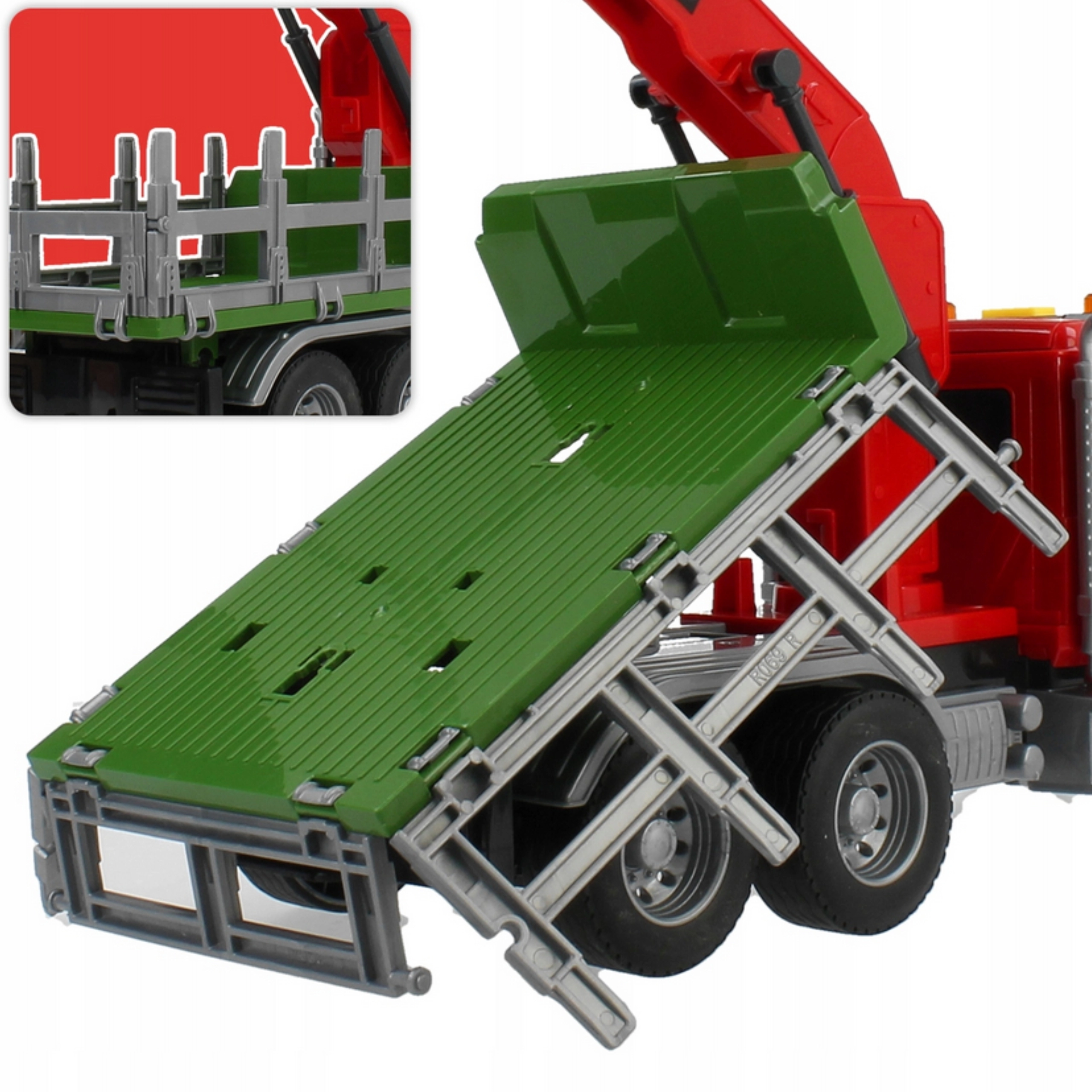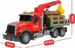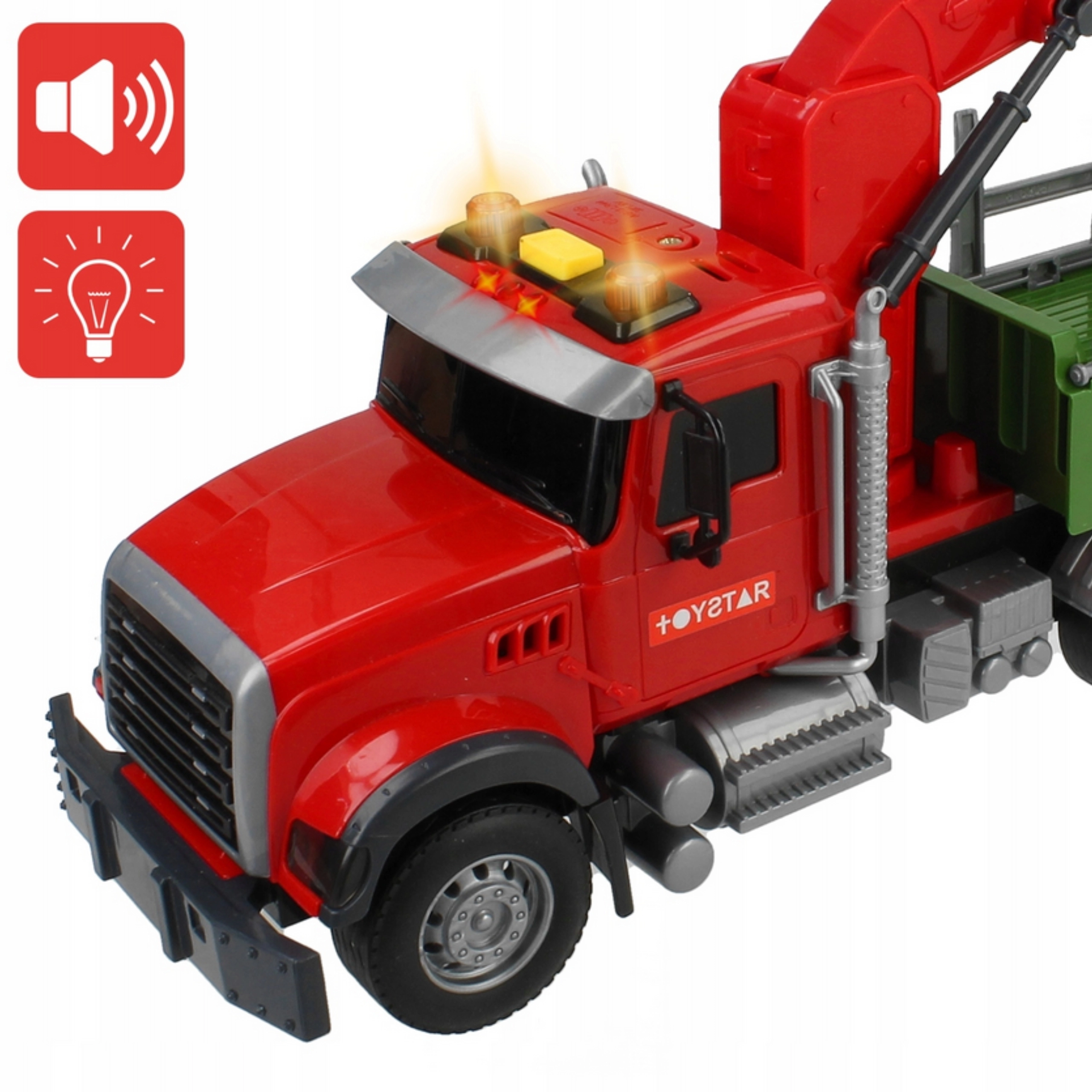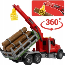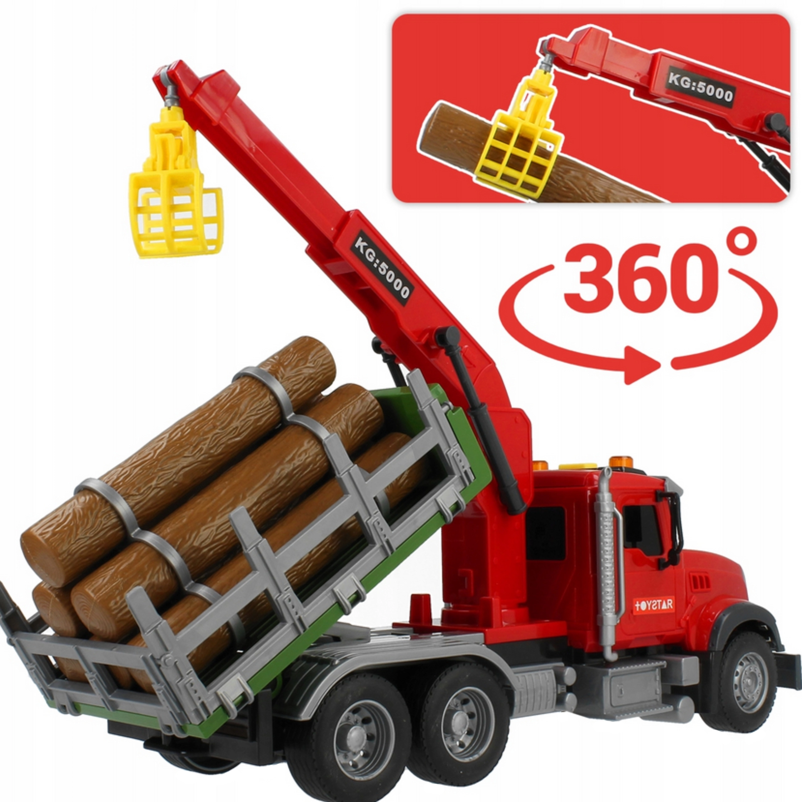 Открийте света на тежката техника с камиона WOOPIE в мащаб 1:14. Детето може ръчно да управлява въртящия се кран с механична щипка, да пренася приложените трупи и да симулира истински горски процес. Играта се подсилва от реалистични звуци на мотор, клаксон и кран и ярки LED ефекти.