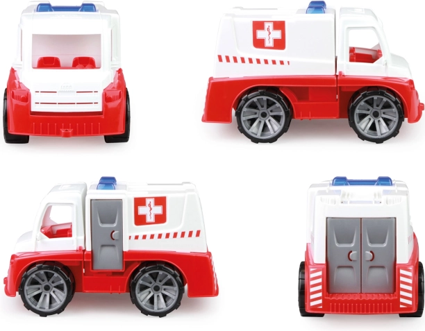 Пластмасовата линейка LENA TRUXX е създадена за безопасна и творческа игра. Благодарение на устойчивата изработка е подходяща както за детската стая, така и за пясъчника. Отварящите се задни врати и повдигащата се кабина подпомагат реалистични сценарии на спасителни акции, а фигурката на спасител с носилка развива фантазията и социалните умения.