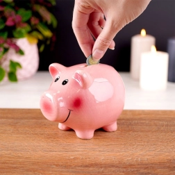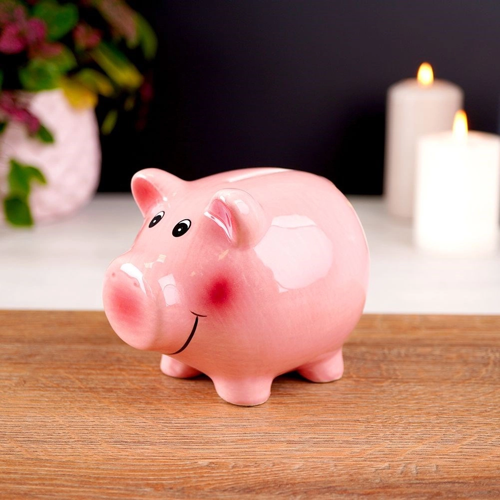Започнете да спестявате с усмивка. Розовото керамично прасенце комбинира висококачествена изработка с практично отваряне, така че да можете да съхранявате парите си безопасно и да ги изваждате лесно. Благодарение на вечния дизайн е подходящо за детска стая, офис и всекидневна.