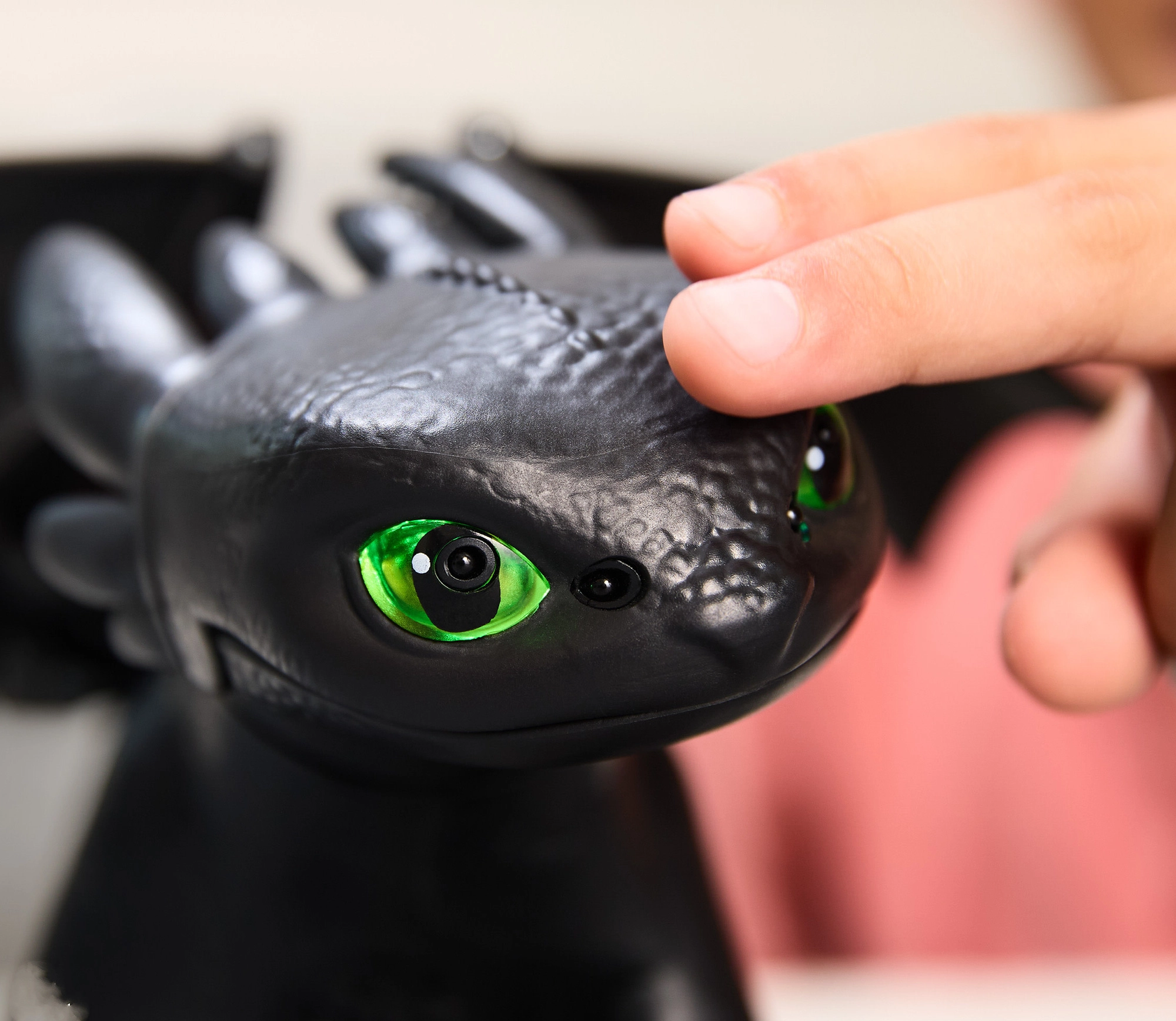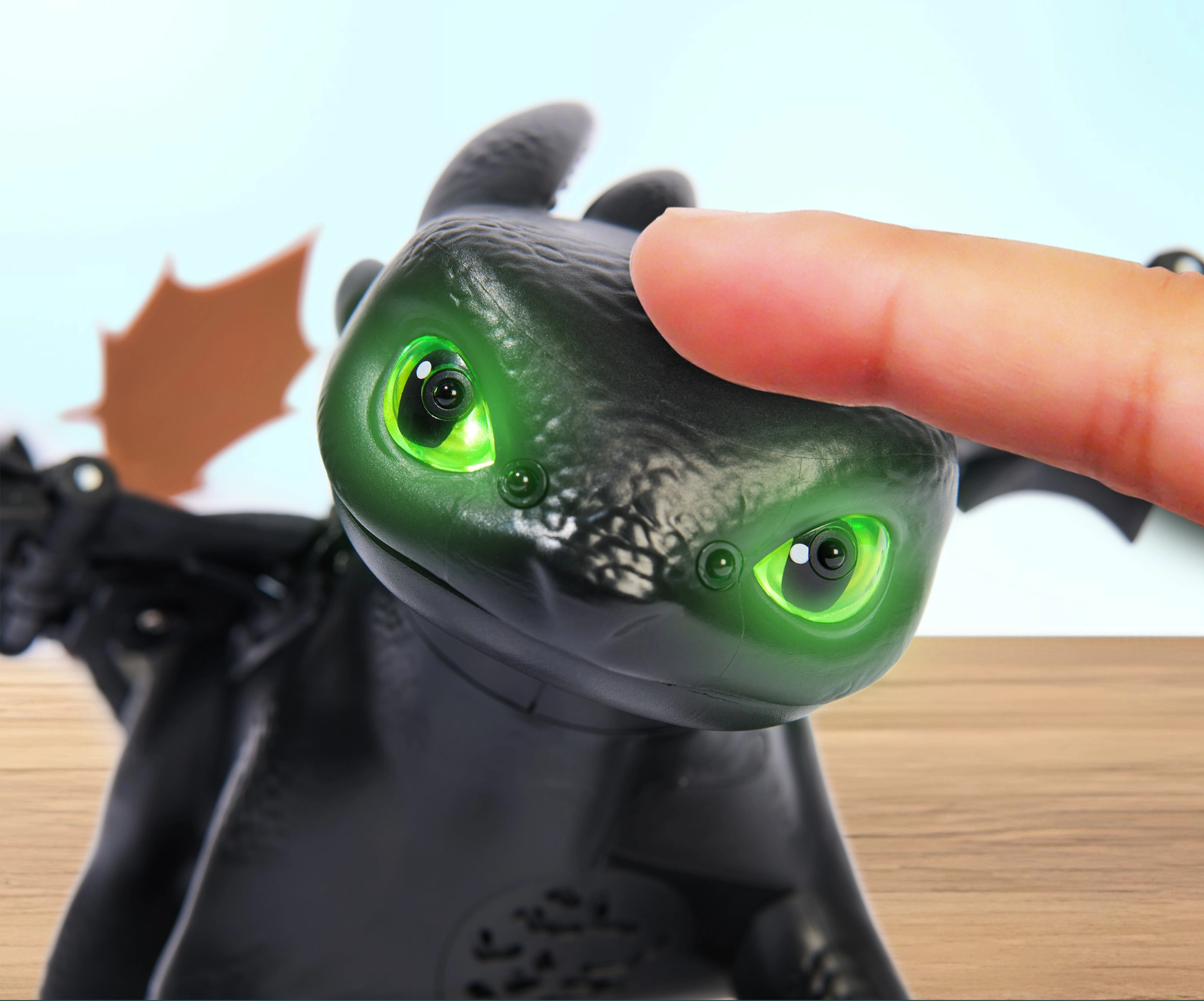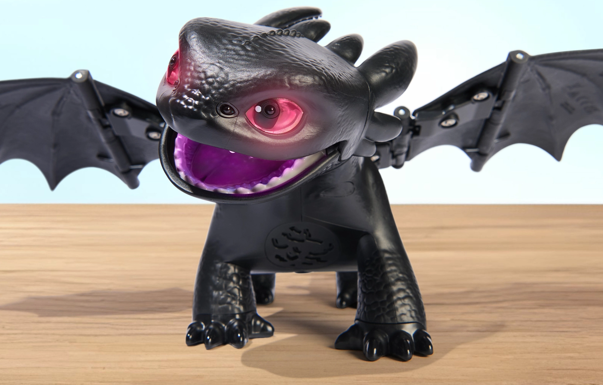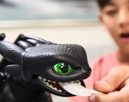 Фигурката предлага 5 уникални личности и повече от 60 звукови и светлинни реакции. Ще отключите мини игри като „keep away“ (надлъгване с рибката), „follow me“ (следвай ме) и „chicken“. На върха на приятелството демонстрира плазмена атака – очите светват в синьо, а размахът на крилете до 51 см изпълва цялото пространство. Вдигнете дракона във въздуха и ще чуете реалистични звуци на полет – идеално за креативна игра и пресъздаване на сцени от филма.