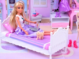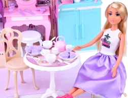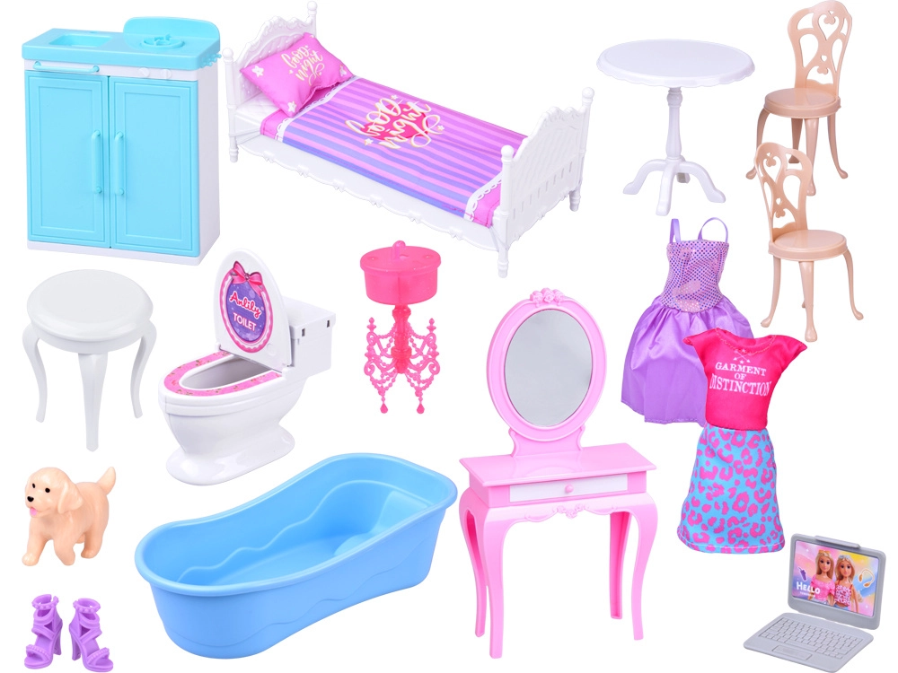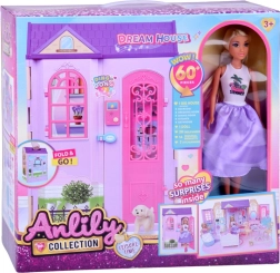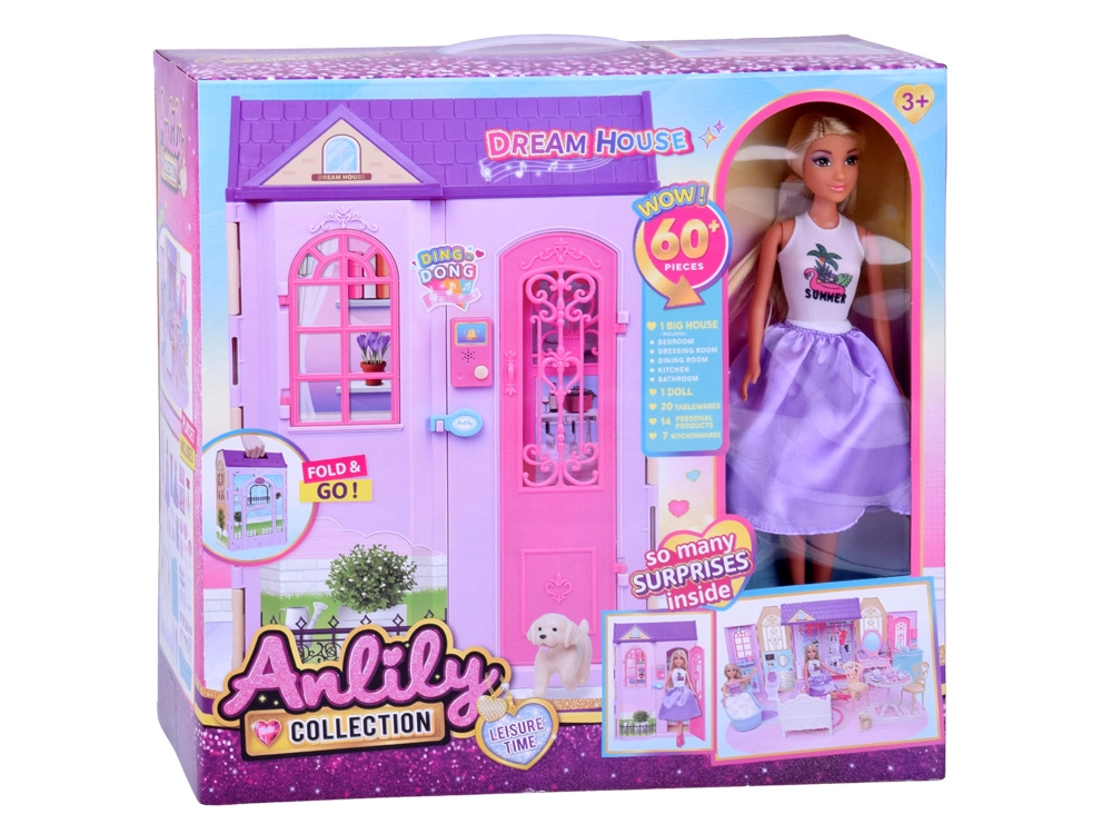 В комплекта има кукла ANLILY с дълга коса, идеална за сресване, мебели (легло с спално бельо, гардероб с чекмеджета, закачалка, вана, тоалетна, тоалетка с табуретка, трапезен сет), кухненско оборудване и много аксесоари за грижа за външния вид и готвене. Отварящи се врати и прозорци, декорации и звънец на батерии подпомагат реалистичната ролева игра.