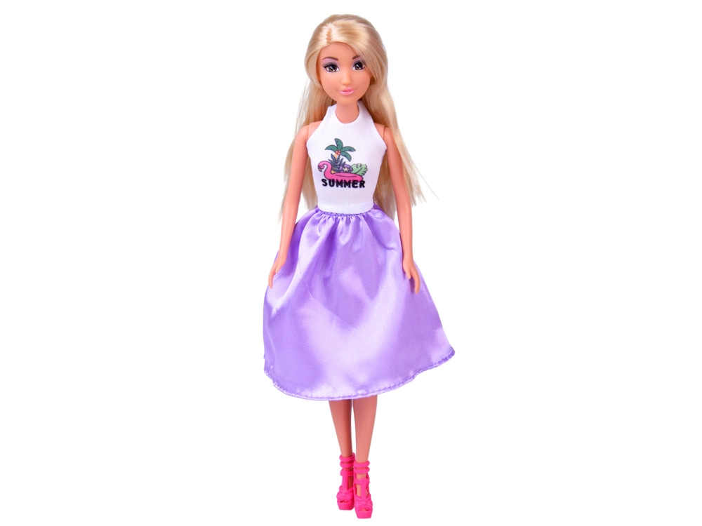 Включена е стилна кукла ANLILY с дълга коса и дрешки. Благодарение на роклите и обувките могат да се създават различни тоалети и да се тренират модни стилизации.