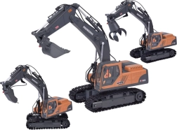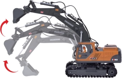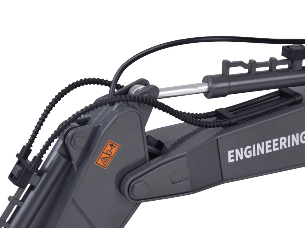 Реалистичният верижен багер с дистанционно управление носи на децата автентично строително изживяване. Въртящата се надстройка на 360°, шарнирната стрела и функционалните инструменти позволяват копаене, загребване и захващане. Благодарение на каучуковите вериги се движи уверено по различни повърхности, а контролерът 2,4 GHz осигурява плавно и ненарушавано управление.
