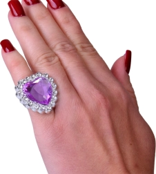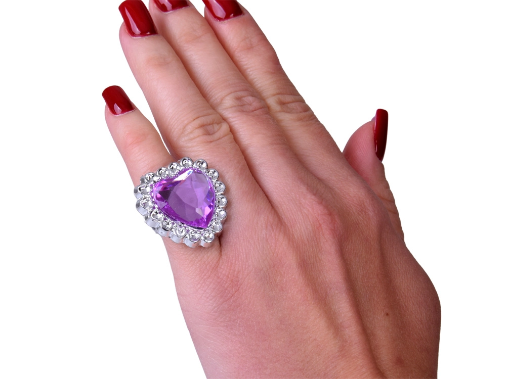 Комплектът включва колие с голям лилав камък, висящи обеци и ефектен пръстен – всичко в единен, очарователен стил.