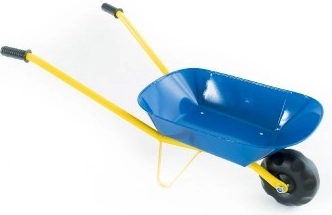 Практична детска градинска количка за малки градинари. Благодарение на металната конструкция и пластмасовото колело лесно превозва пясък, пръст и растения. Лесна маневреност, любим син дизайн и размери 75 × 30 × 40 см са идеални за деца от 3 години.