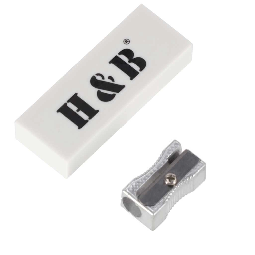 В комплектa има качествена гума и метална острилка, така че можете да рисувате, коригирате и подостряте по всяко време и навсякъде.