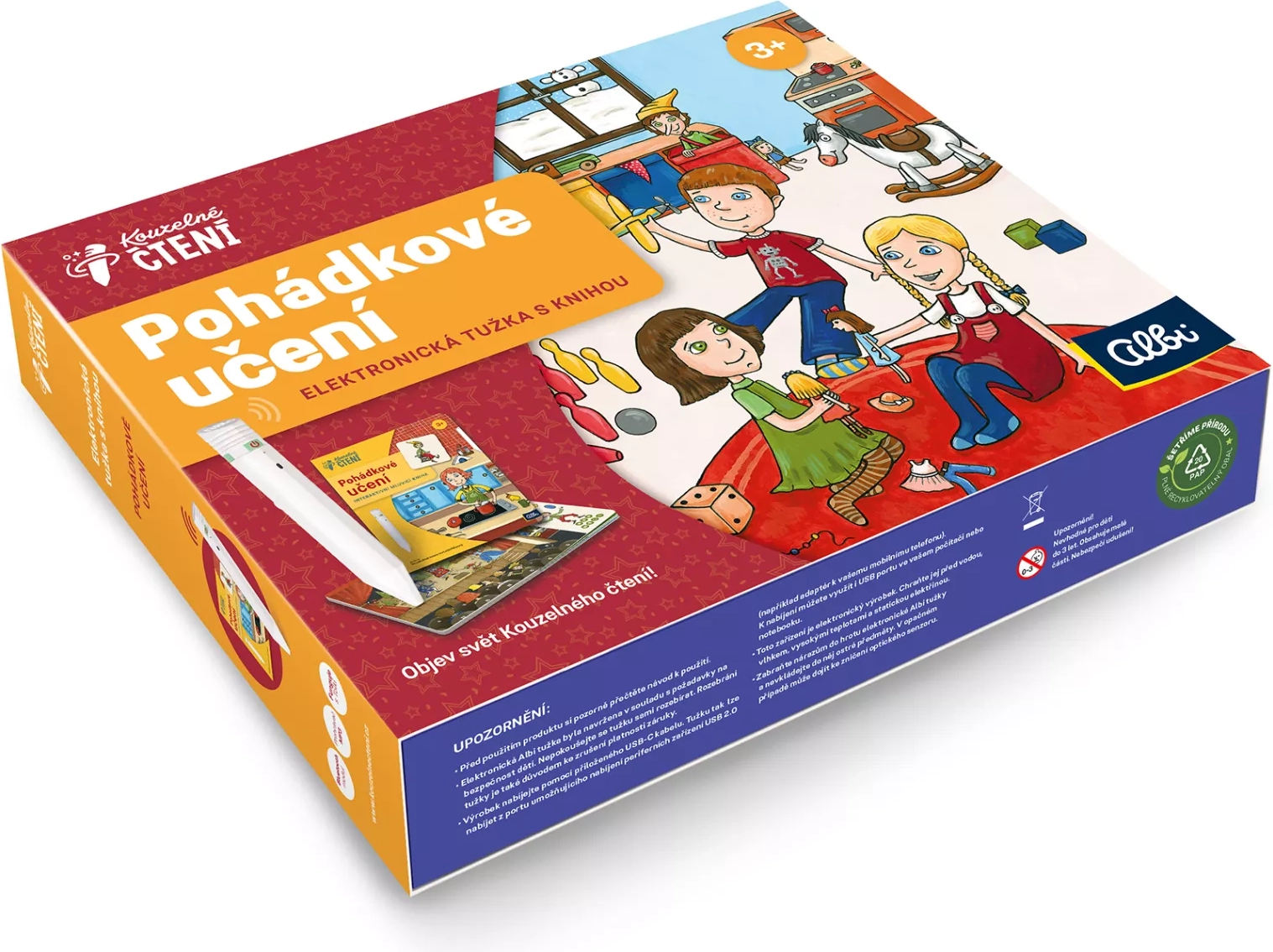 - Какво ще намерите в опаковката: електронен ALBI химикал 2.0, книга „Приказно учене“, USB-C кабел, пътеводител за Вълшебно четене, 10 стикера за MP3 плеър, 10 стикера за управление на звука, Аудио блок (без поставка за химикала).