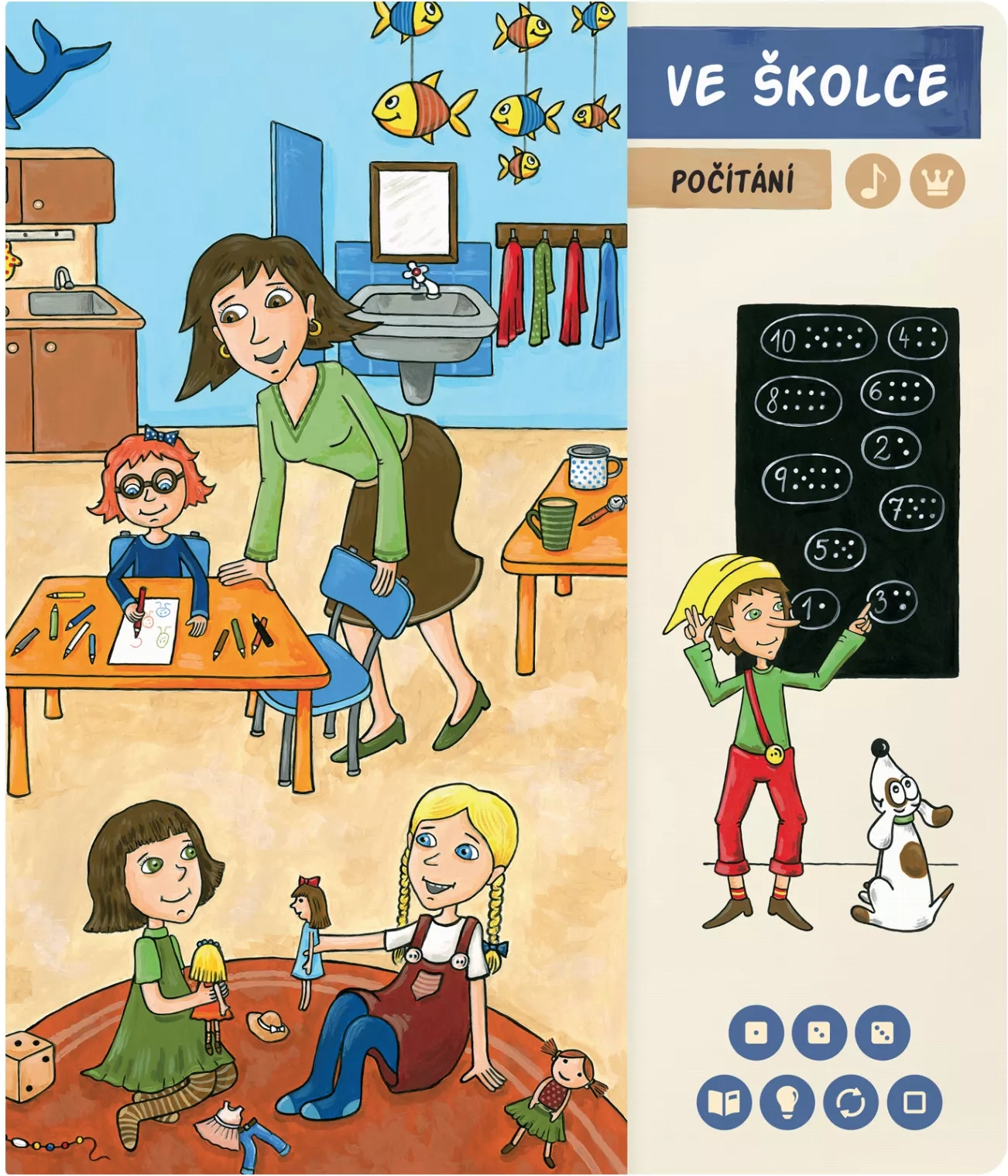 Сетът е идеален за първите стъпки в четенето и опознаването на света. Достатъчно е да докоснете с електронния химикал изображенията или текста и веднага ще прозвучи информация, звук или музика. Така децата могат самостоятелно да „прочетат“ приказка и едновременно да развиват слухово възприятие, логика и речников запас. През цялата книга напътства джуджето Звидялко, а съдържанието е озвучено от професионални актьори (Вероника Кхек Кубаржова и Лукаш Пржиказки).