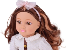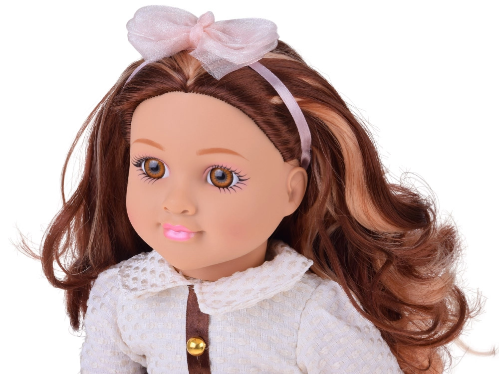 Гъстата и мека коса може да се сресва, сплита и украсява с диадема с панделка – идеална за малки фризьорки и креативен стайлинг.