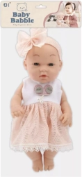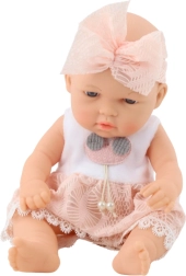 Тази кукла бебе очарова с елегантна розова рокля с дантелен кант и съчетана диадема с голяма панделка. Нежните черти на лицето и приятните материали създават усещане за истинско бебе, което децата бързо ще заобичат.