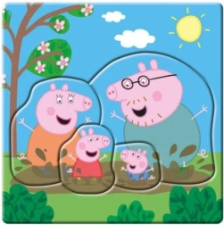 Комплектът пъзели Peppa Pig: Семейството носи чудесно забавление за малки деца, които се учат правилно да подреждат форми. Включва три картинки, разделени на 3–5 части, така че щом детето овладее най-лесната, може да премине към по-предизвикателните. Всеки пъзел има красив мотив с прасенцето Пепа, който ще впечатли всеки малък строител.