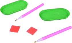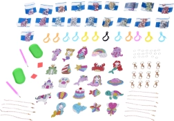 В комплекта ще откриете мотиви като морски русалки, делфин, рак, морско конче, кит с корона, дъга, планета, замък, еднорог, торта, котешка лапичка, мида и други. Всяка висулка има предварително отбелязани полета за камъчетата, така че децата лесно разбират къде да поставят всеки елемент. Достатъчно е да изсипете камъчетата в подложката, да вземете с апликатора с восък и да приложите.