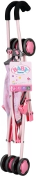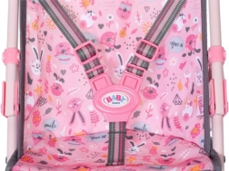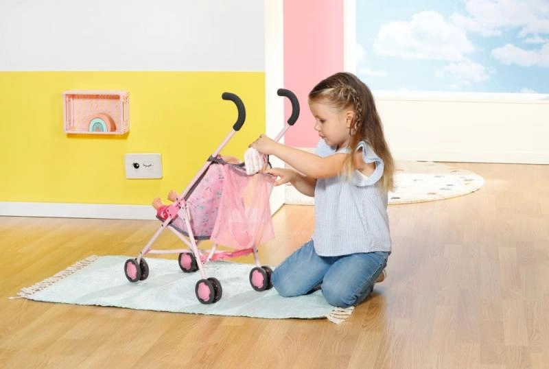 Детската количка за кукли BABY born е идеална за ежедневни разходки и игра у дома. Леката метална конструкция, удобните пяна дръжки и четирите двойни колела осигуряват лесно управление дори за малки детски ръчички. Седалката с весел принт е оборудвана с предпазни колани, които надеждно държат куклата на място.