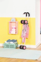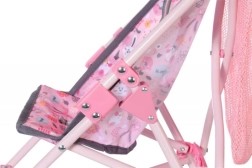 Зад седалката ще откриете практична пазарска мрежа за дребни вещи, шишенце или любими играчки. След игра количката лесно се сгъва до компактни размери, така че почти не заема място. Подходяща е за кукли с размер 36–43 см и насърчава креативна, продължителна игра.