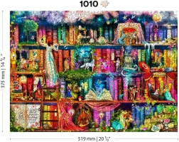 Пъстра илюстрация на библиотека, пълна със съкровища, създава впечатляващо изображение при сглобяване, което впечатлява с контраст и богатство на детайли.