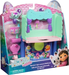 Открийте вълшебната спа стая на Морската котка от филма GABBY’S DOLLHOUSE THE MOVIE – двуетажен комплект, пълен с изненади, който превръща играта в подводно СПА приключение. Включва фигурка на Морската котка и 8 тематични аксесоара, съвместим е с Голямата къща на Габи и има телепортационен ефект за още по-креативни истории.