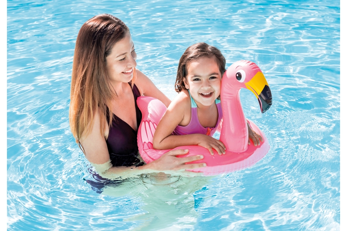 Околният пояс осигурява стабилна плаваемост, а децата могат лесно да се държат за главичката на животинчето. Отличен за постепенно привикване към водата.