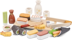 Играта със суши сета развива фина моторика, търпение и креативно мислене. Децата могат да отворят своят „ресторант“, да тренират сервиране и да учат за храната и културите. Издръжливите дървени части са приятни на допир и проектирани за многократна игра.