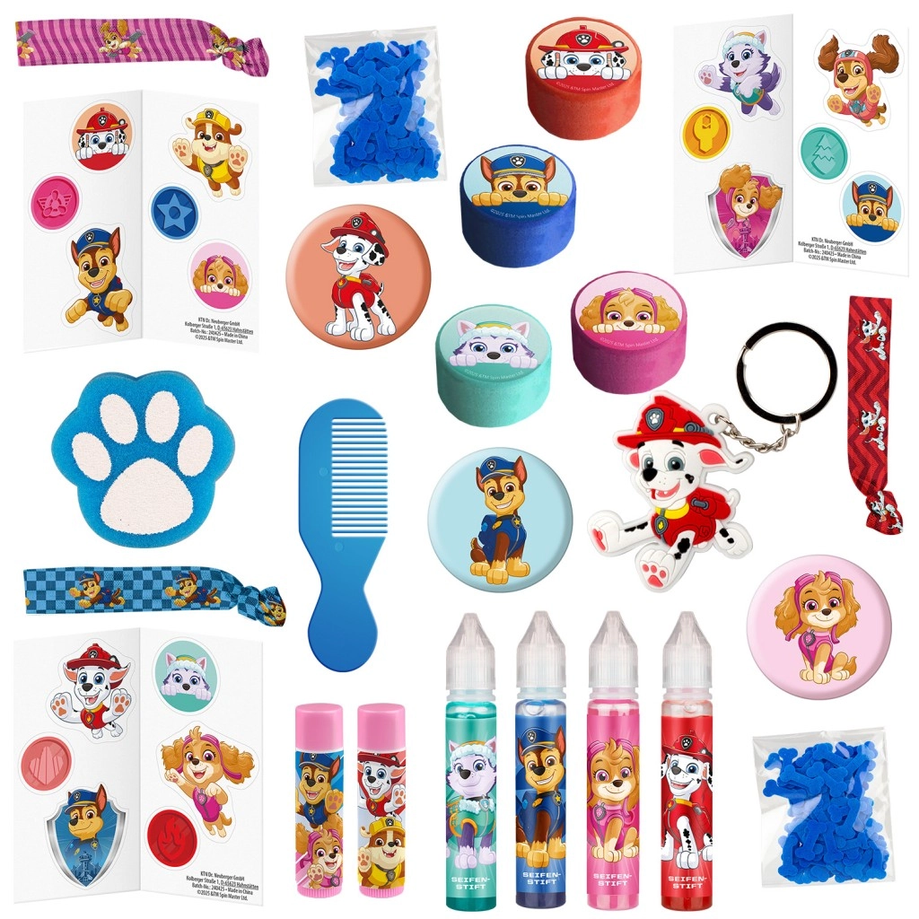 Откривайте всеки ден нова изненада с адвент календара PAW PATROL, пълен със забавления за баня и малки аксесоари. Календарът ще зарадва малките фенове на любимите герои и ще превърне рутинната хигиена в забавен ритуал. Очакват ви бомби за вана, сапуни, балсами за устни, сладки играчки за баня и стикери – идеален подарък за предколедния период.