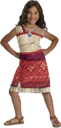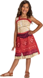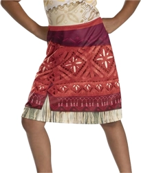Костюмът е проектиран за деца на възраст 7–8 години (препоръчителен ръст 124–135 cm) и отлично пресъздава визията на любимата героиня от филма Ваяна Моана 2. Асиметрична презрамка, племенни шарки, многопластов вид на полата и „тревисти“ кантове придават автентичен характер на преобличането.