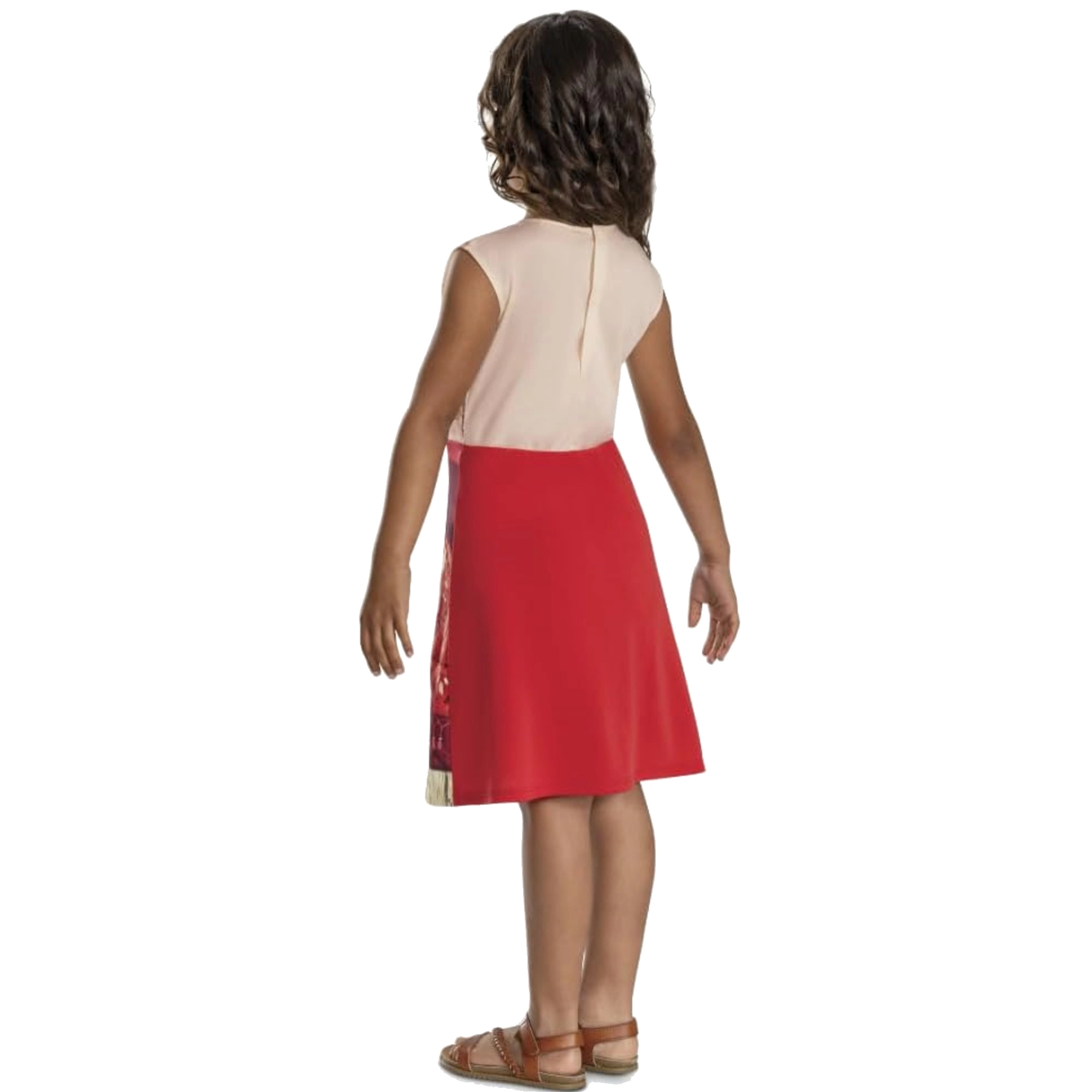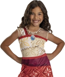 Очаровайте малките фенове на Disney със стилен костюм, вдъхновен от героинята Ваяна (Moana). Лекият, удобен комплект рокля в червено-кремави тонове с полинезийски мотиви и интегрирано „колие“ със син талисман е идеален за карнавал, маскен бал и домашни преобличания. Благодарение на качествения материал от 100% полиестер се облича лесно и запазва формата си.