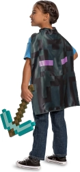 Влезте в света на MINECRAFT с автентичен комплект, който ще зарадва всеки ентусиаст. Диамантената кирка вярно напомня игровия предмет и благодарение на удобната, ергономична дръжка стои добре в детската ръка. Черното наметало с мотив на ENDERMAN придава на костюма емблематична визия.
