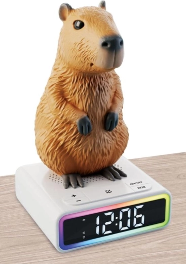 Превърнете събуждането в забавление. Този стилен будилник с мотив капибара предлага цветна LED подсветка, която се променя постепенно, и богат избор от мелодии, за да бъде всяка сутрин по-приятна. Благодарение на ясния дисплей бързо ще видите часа и настройките на алармата.