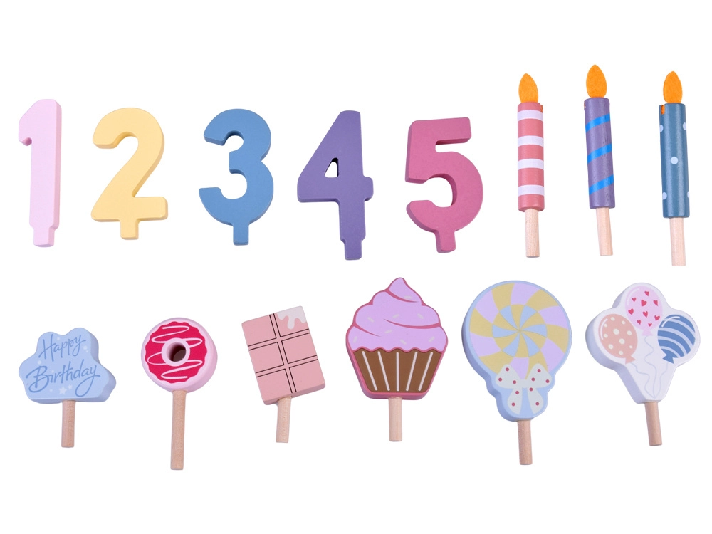Свещичките, цифрите и сладките топъри се поставят лесно в отворите. Чудесно за празненства, учене на числа и въображаема игра.
