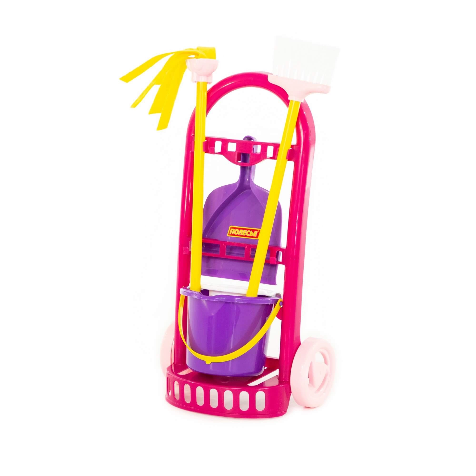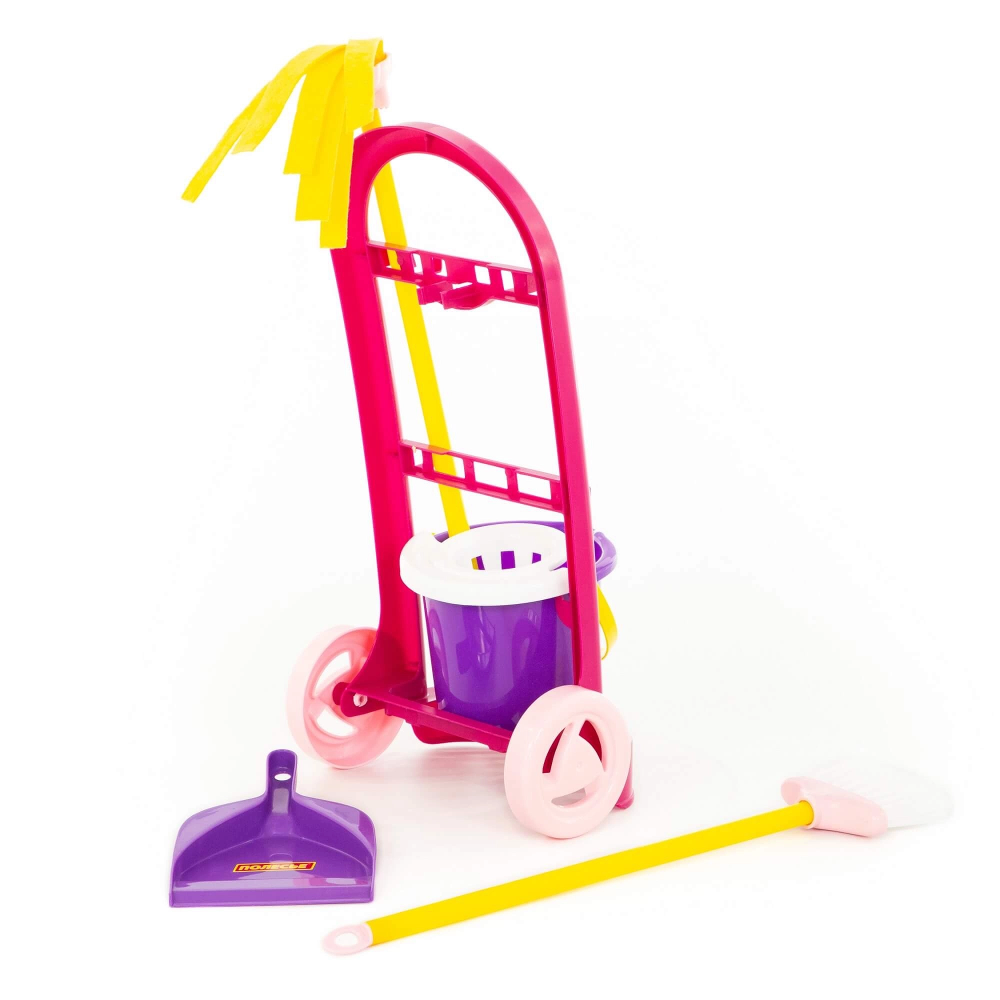 Дръжте всички почистващи принадлежности на едно място. Стабилната и лека количка позволява на децата лесно да превозват инструментите из целия дом.