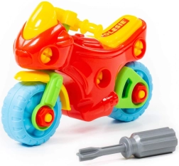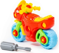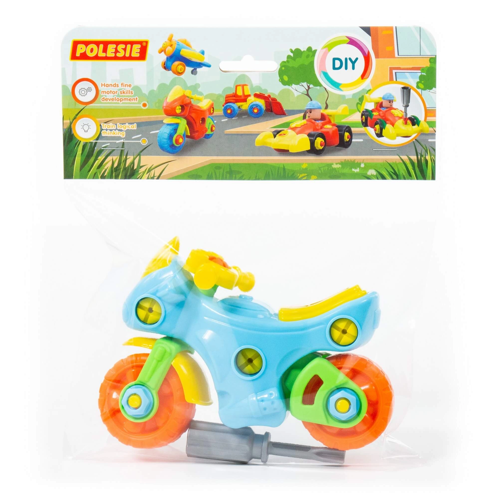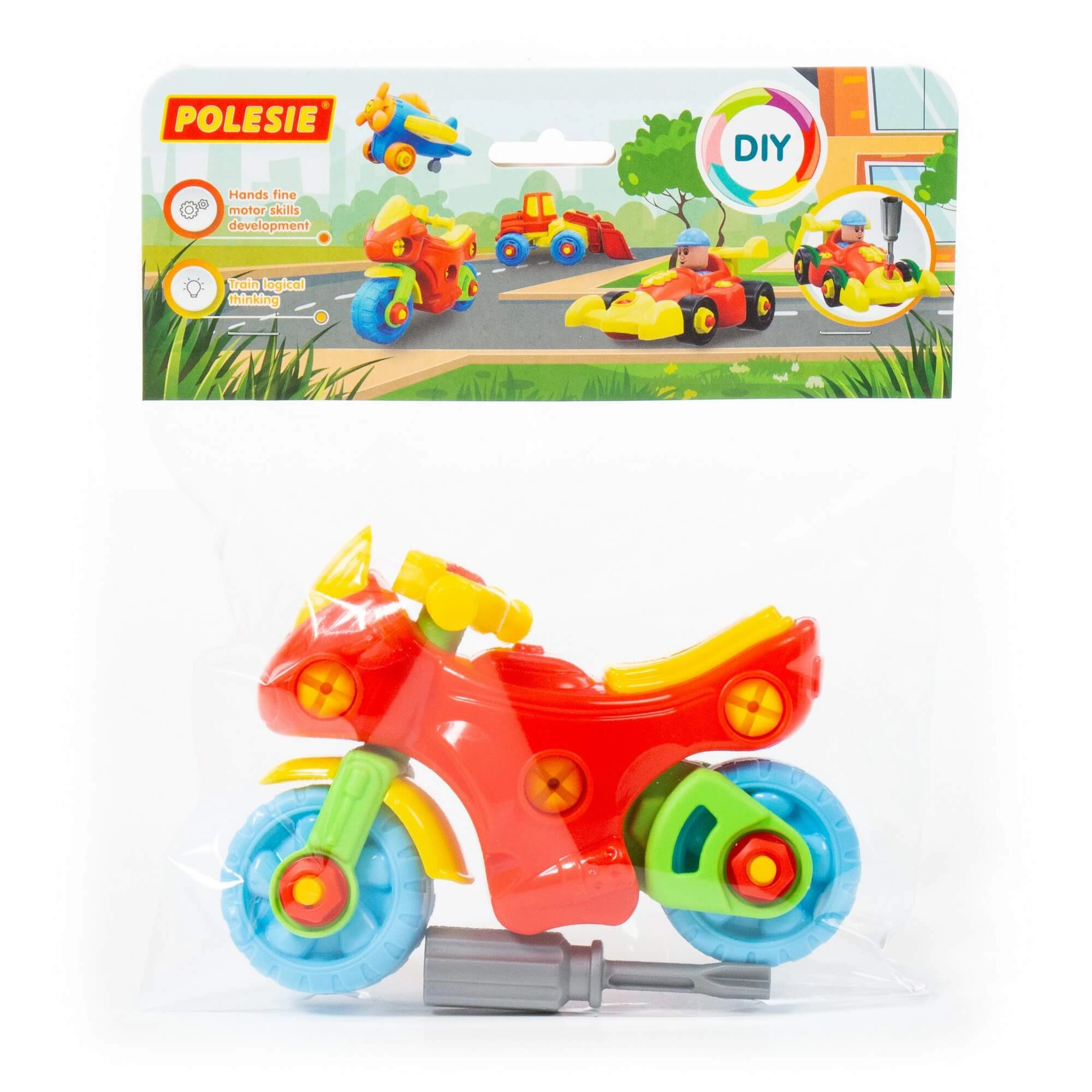 Този креативен разглобяем мотор насърчава ученето чрез игра: децата тренират координацията око–ръка, опознават принципите на сглобяването и се забавляват както при монтажа, така и при демонтажа. В комплекта има пластмасова отвертка, пригодена за малки ръце, и големи „винтове“ за лесна манипулация.