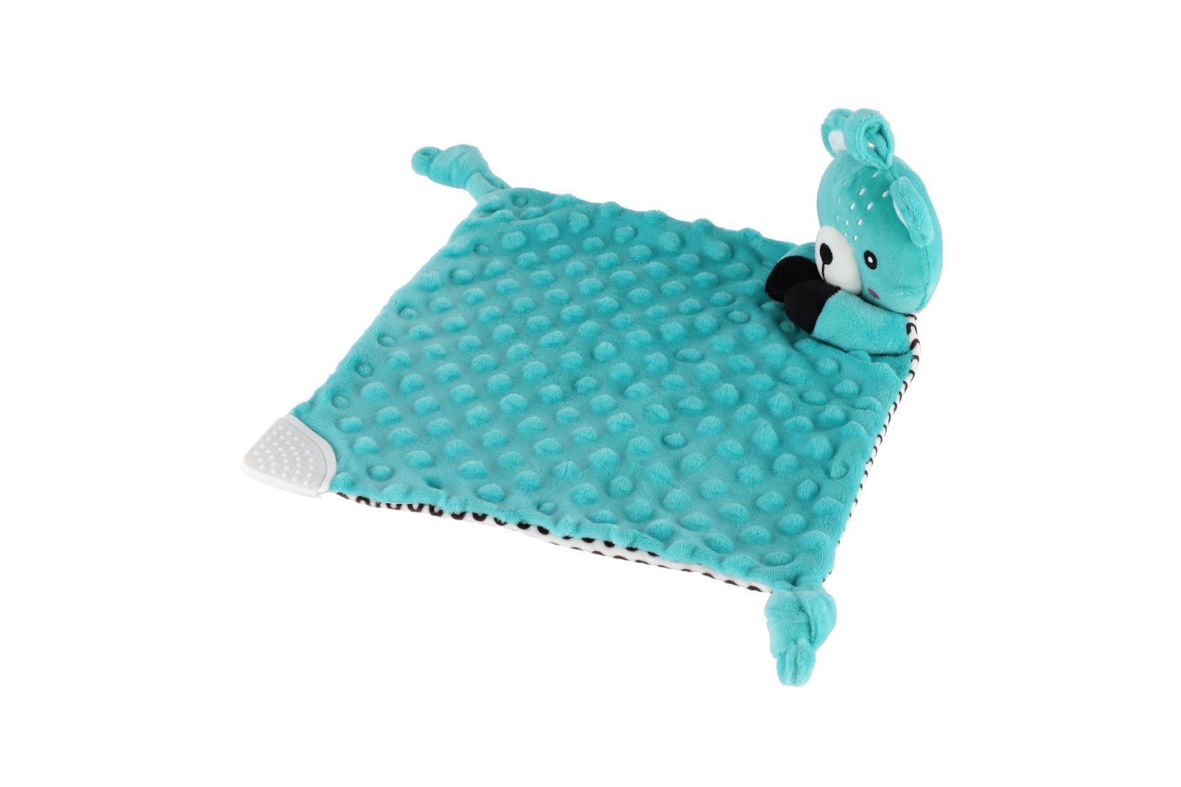 Меката дъвкалка в ъгъла на одеялцето помага за облекчаване на чувствителните венци при никнене на зъбки, безопасна за деца от раждането.