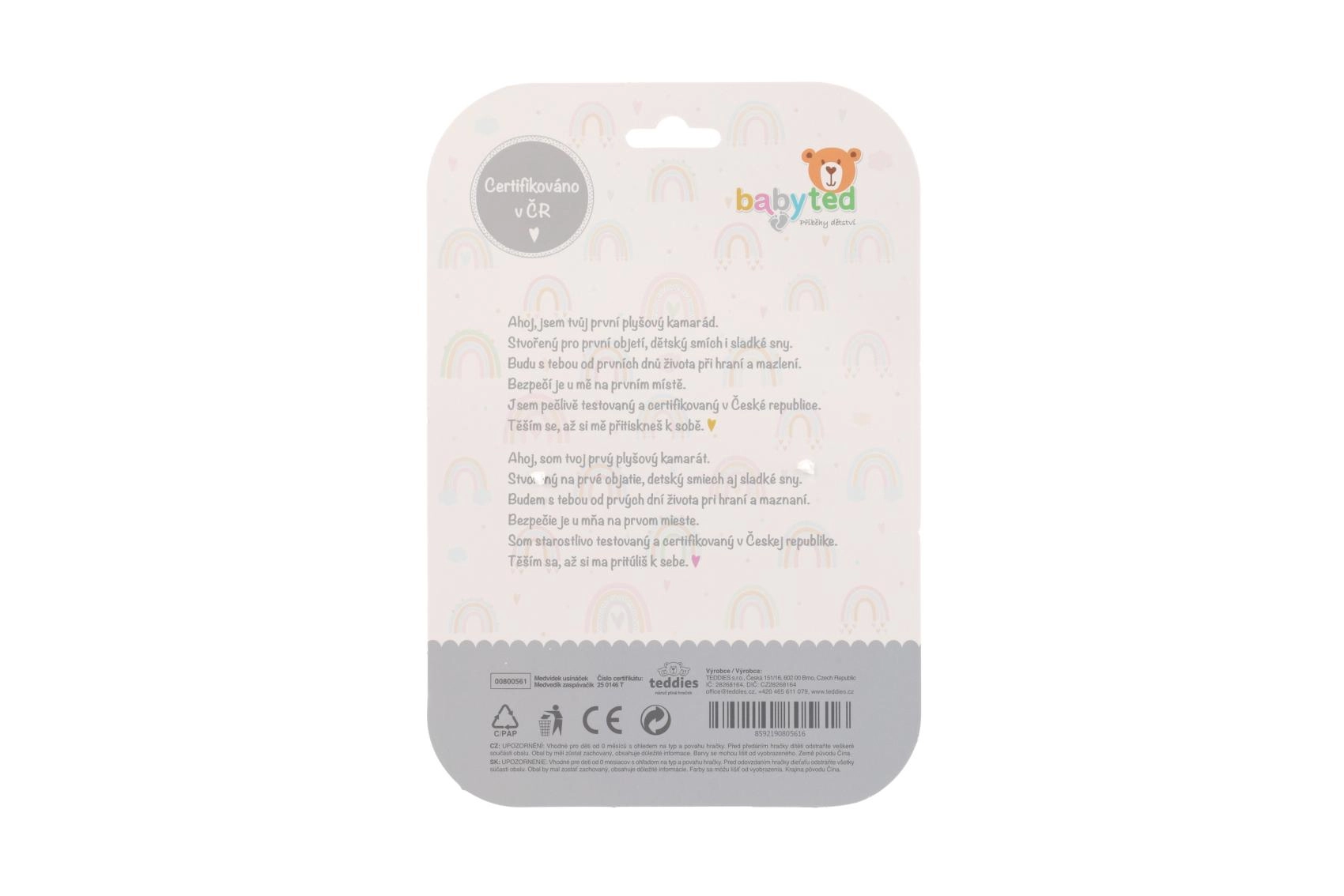 Това плюшено одеялце за приспиване BABYTED е проектирано за бебета още от раждането. Ултра меката материя минки с релефни точици е приятна на допир и със своя успокояващ характер подпомага по-добрия сън. Интегрираната дрънкалка в главичката на мечето звъни нежно и естествено привлича вниманието на детето.