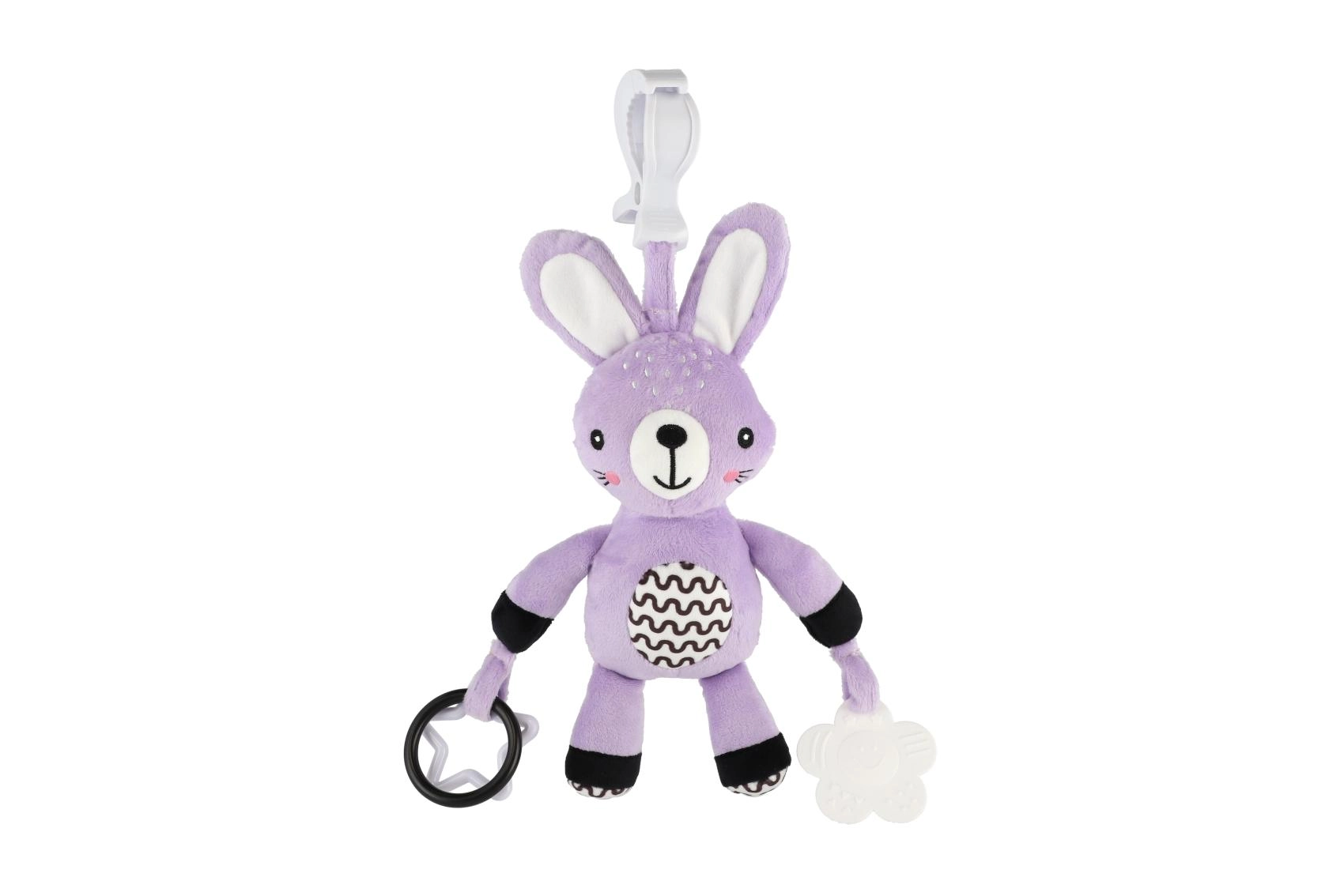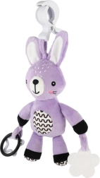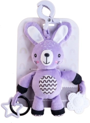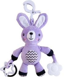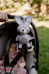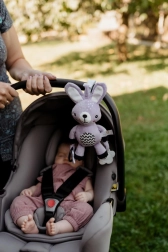 Това меко висящо зайче ще стане първият приятел на вашето бебе у дома и по време на път. Благодарение на универсалната щипка лесно го прикрепяте към количка, столче за кола, кошара или гимнастика за бебе. Мекото плюшено телце кани за гушкане, а дрънчащите уши и контрастните детайли стимулират зрителното и слуховото възприятие.