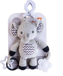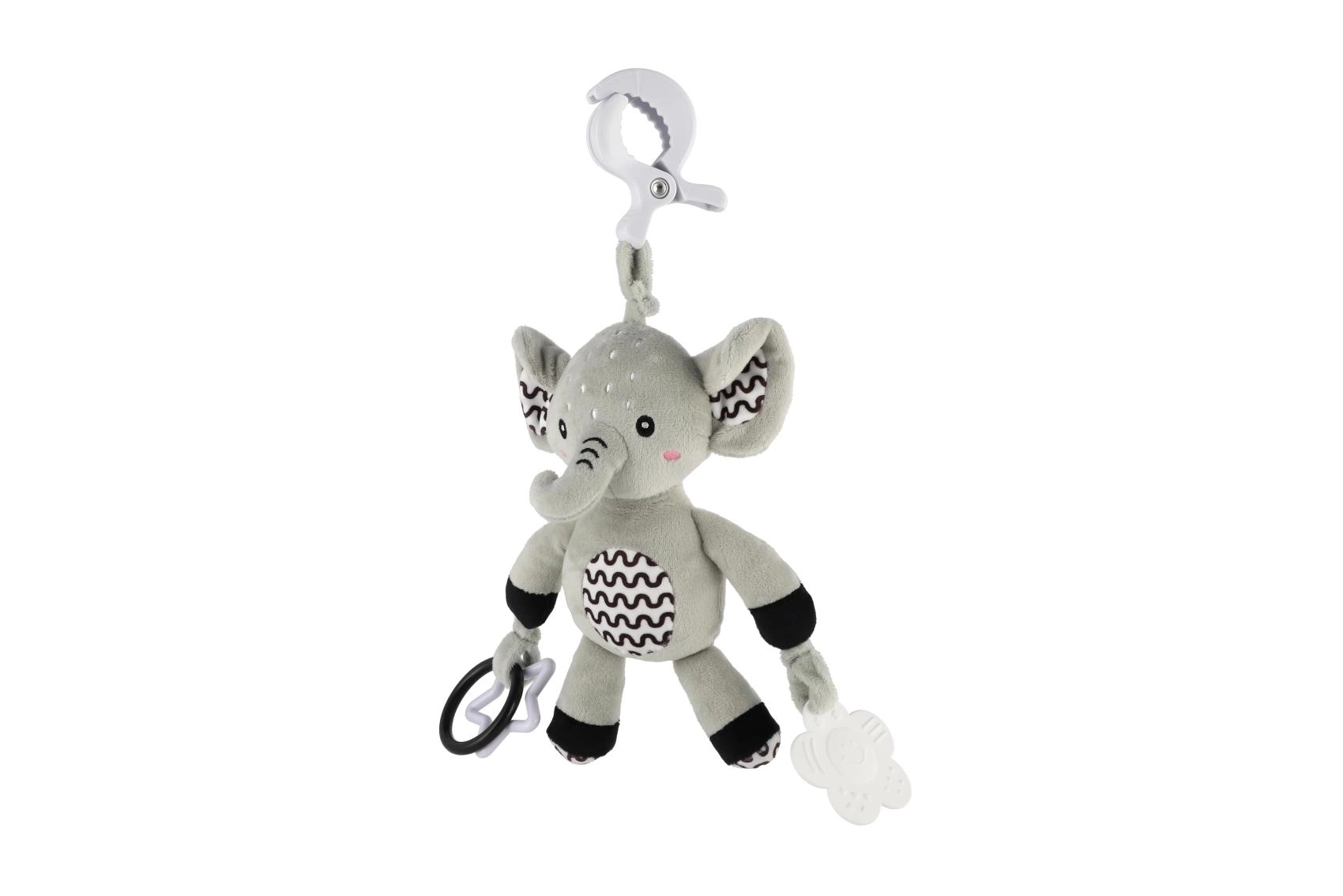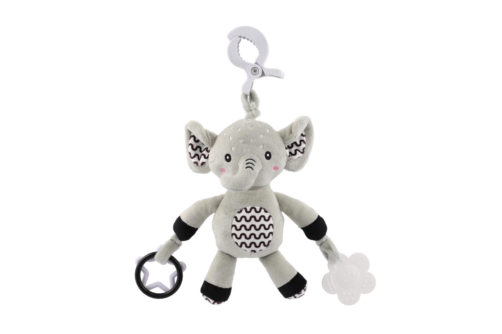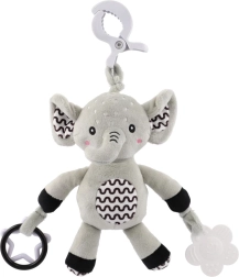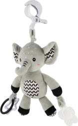 Очарователен слончо приятел за най-малките от 0 месеца. Благодарение на практичния клипс го прикрепяте лесно към количка, кошче или столче за кола. Изработен е от мек плюш, има нежна дрънкалка, шумкащи ушички и безопасна гризалка за успокояване на венците. Страхотен за сетивно възприятие, фината моторика и забавление у дома и в движение.
