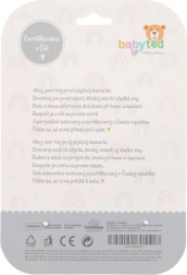 При натискане играчката издава приятен пищящ звук, който забавлява бебето и подпомага слуховата стимулация.