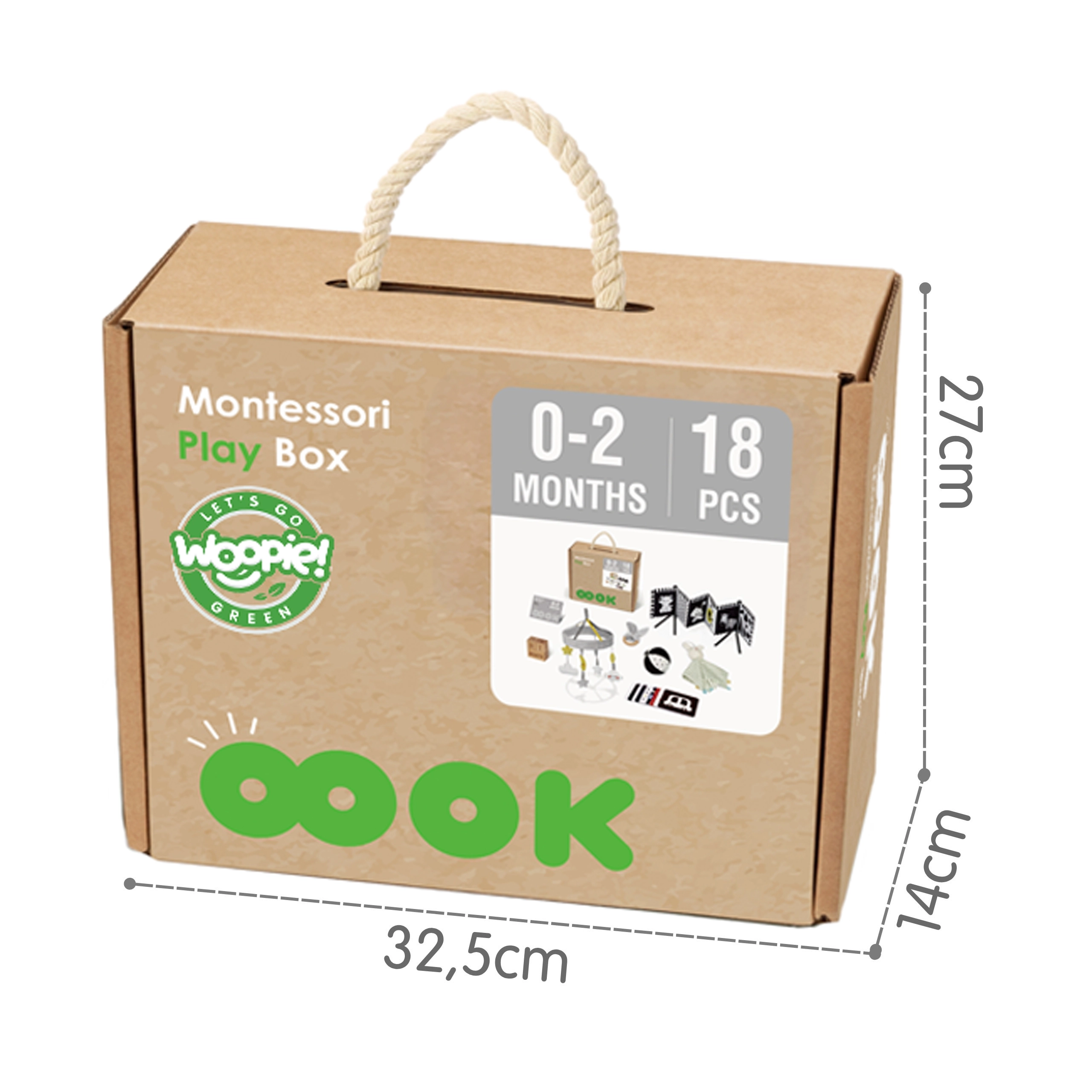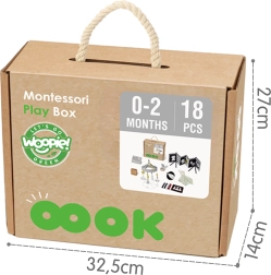 Открийте образователния бокс 7-в-1 за най-малките от 0–2 месеца от марката WOOPIE GREEN. Внимателно съставеният комплект от контрастни и сензорни играчки в духа на Монтесори подпомага зрението, слуха и осезанието, развива координацията ръка–око и носи спокойствие през първите дни на откриване. Включен е родителски наръчник – кога и как да се използват отделните помагала. Идеален подарък за новородено и за нови родители.