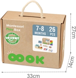Тази Монтесори кутия 6-в-1 от марката WOOPIE предлага разнообразни активности за ежедневни открития. Дървени елементи с FSC сертификация, меки силиконови кубчета и карти с картинки образуват цялостна програма за ранна стимулация, която подкрепя естественото любопитство и самостоятелността на детето.