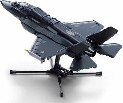 Сглобете детайлен модел на модерния изтребител F-35B Lightning II в мащаб 1:44 от 705 елемента от здрав ABS пластмаса. Комплектът предлага подвижни части (крила, хоризонтални стабилизатори, колесник), прозрачен кокпит с място за пилот, пилони за въоръжение и стойка за изложение. Включва оригинална минифигурка на пилот и съвместимост с други конструктори.