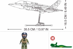 В комплекта има оригинална минифигурка на пилот, пилони със симулирано въоръжение (ракети и бомби) и сглобяема стойка за ефектна презентация. Качествената ABS пластмаса осигурява здравина, стабилност и дълъг живот. Конструкторът е съвместим с продуктите на други производители. Подпомага развитието на фината моторика, креативността и търпението.