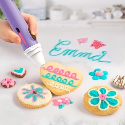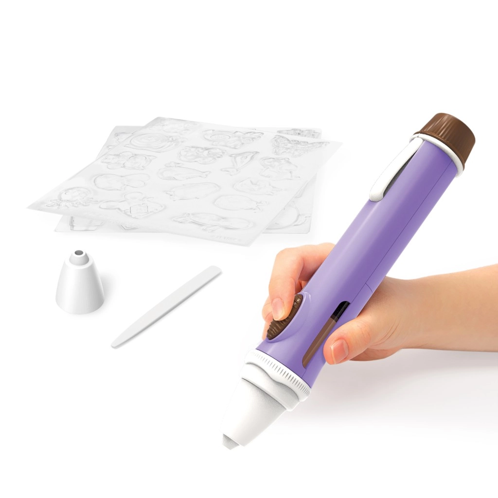 Превърнете сладките изкушения в малки произведения на изкуството. Шоколадовата писалка позволява на децата да пишат, рисуват и създават различни форми от разтопен шоколад. Благодарение на ергономичното захващане и прецизния връх с нея се работи удобно и от по-малки ръце, а бързото втвърдяване на шоколада осигурява мигновен ефект върху бисквити, кексчета, плодове и други деликатеси.