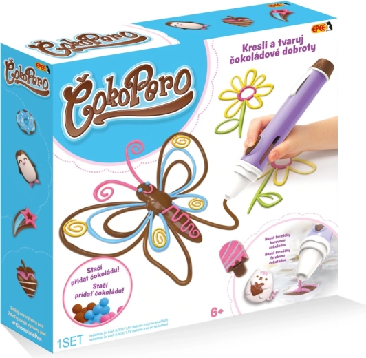 В комплекта са включени две прозрачни форми с общо 50 мотива – от животни и сърчица до цветя и декорации. Така децата лесно създават красиви шоколадови украси и фигурки, които ще зарадват семейството и приятелите. Достатъчно е да напълните писалката с разтопен шоколад според инструкциите, да натиснете бутона и да започнете да творите.