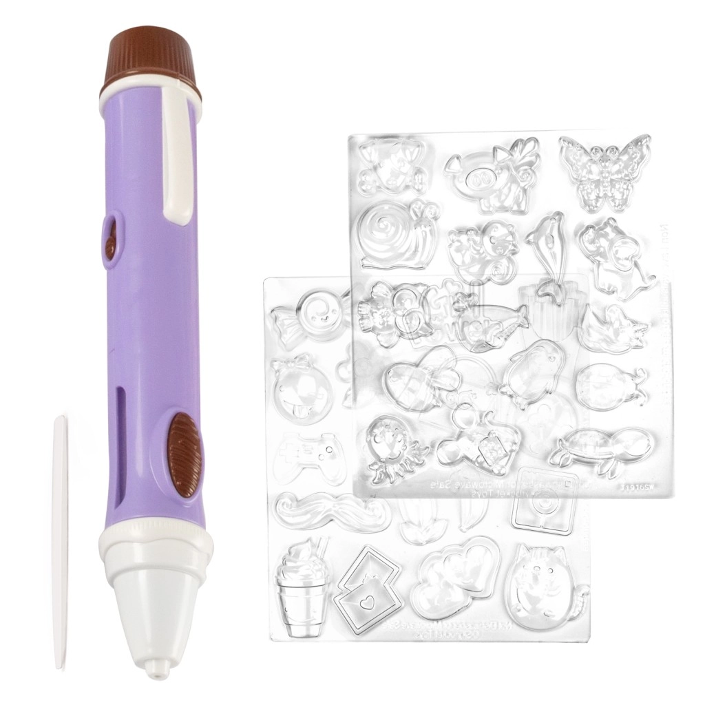 - шоколадова писалка, рисуващ връх, 2 прозрачни форми