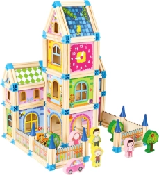 Този креативен конструктор е проектиран да расте заедно с децата ви. Здравите дървени елементи в комбинация с пластмасови съединители позволяват изграждане на стабилни и разнообразни конструкции – от малки къщички до монументални замъци. Цветните контрасти и различните форми стимулират логическото мислене и пространственото въображение.